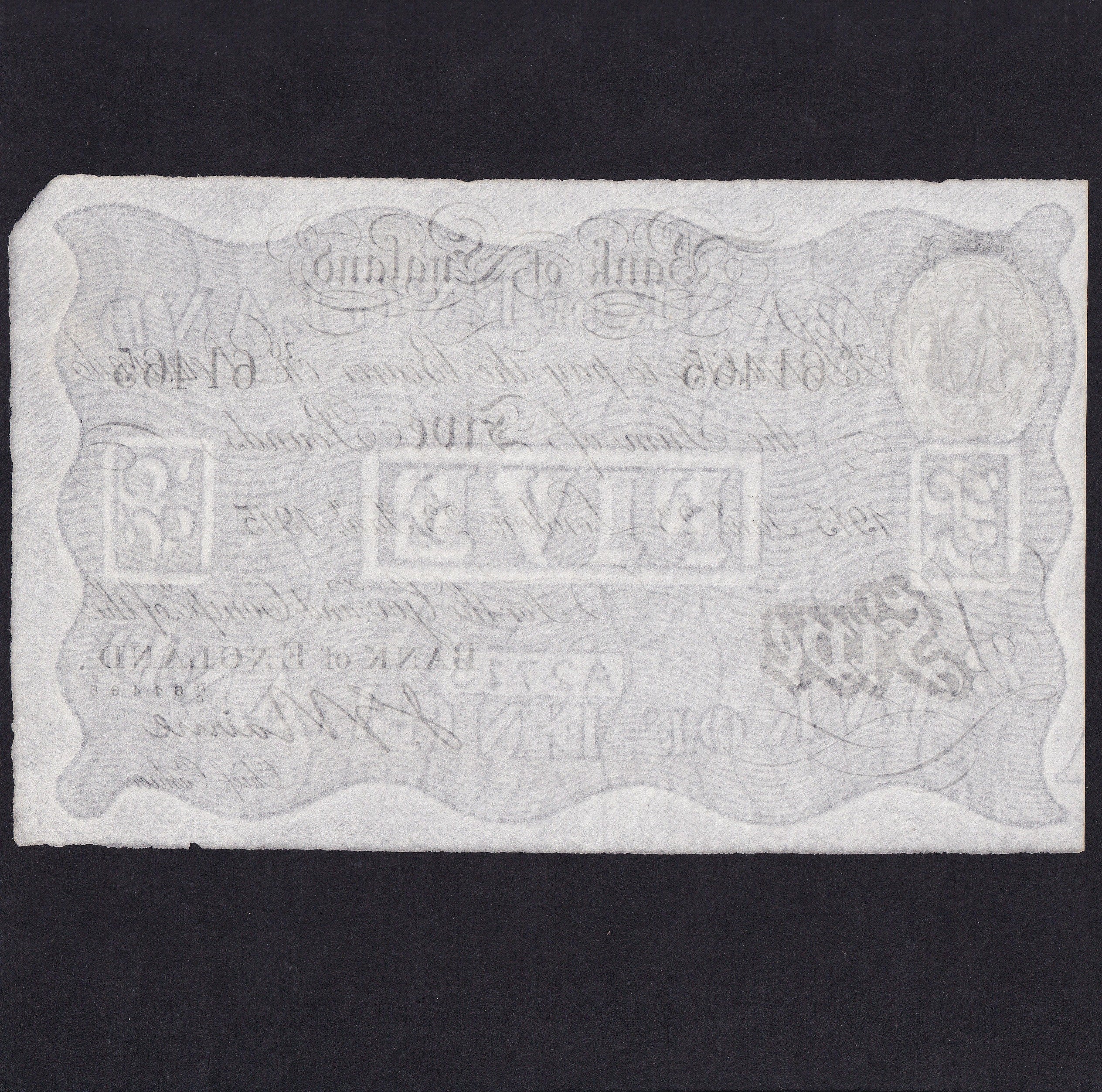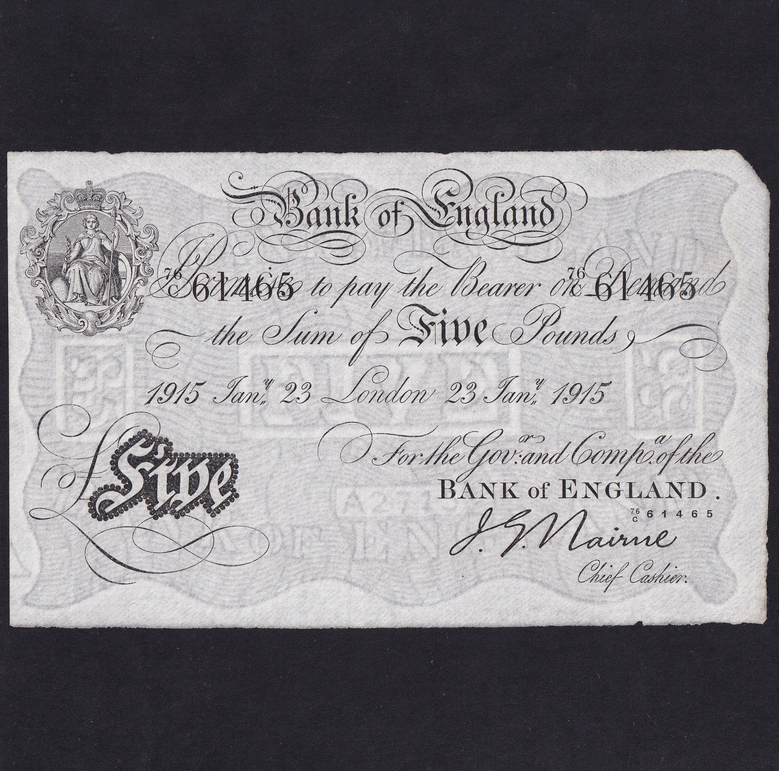 Bank of England (B208b) Nairne, £5, 23 January 1915, 76C 61465, pressed, VF