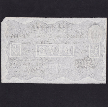 Decrease quantity for Bank of England (B208b) Nairne, £5, 23 January 1915, 76C 61465, pressed, VF