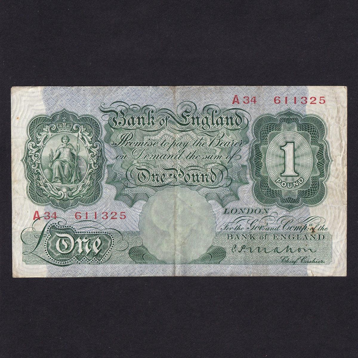 Bank of England (B212) Mahon, £1, 1928, first series, A34, VG/Fine
