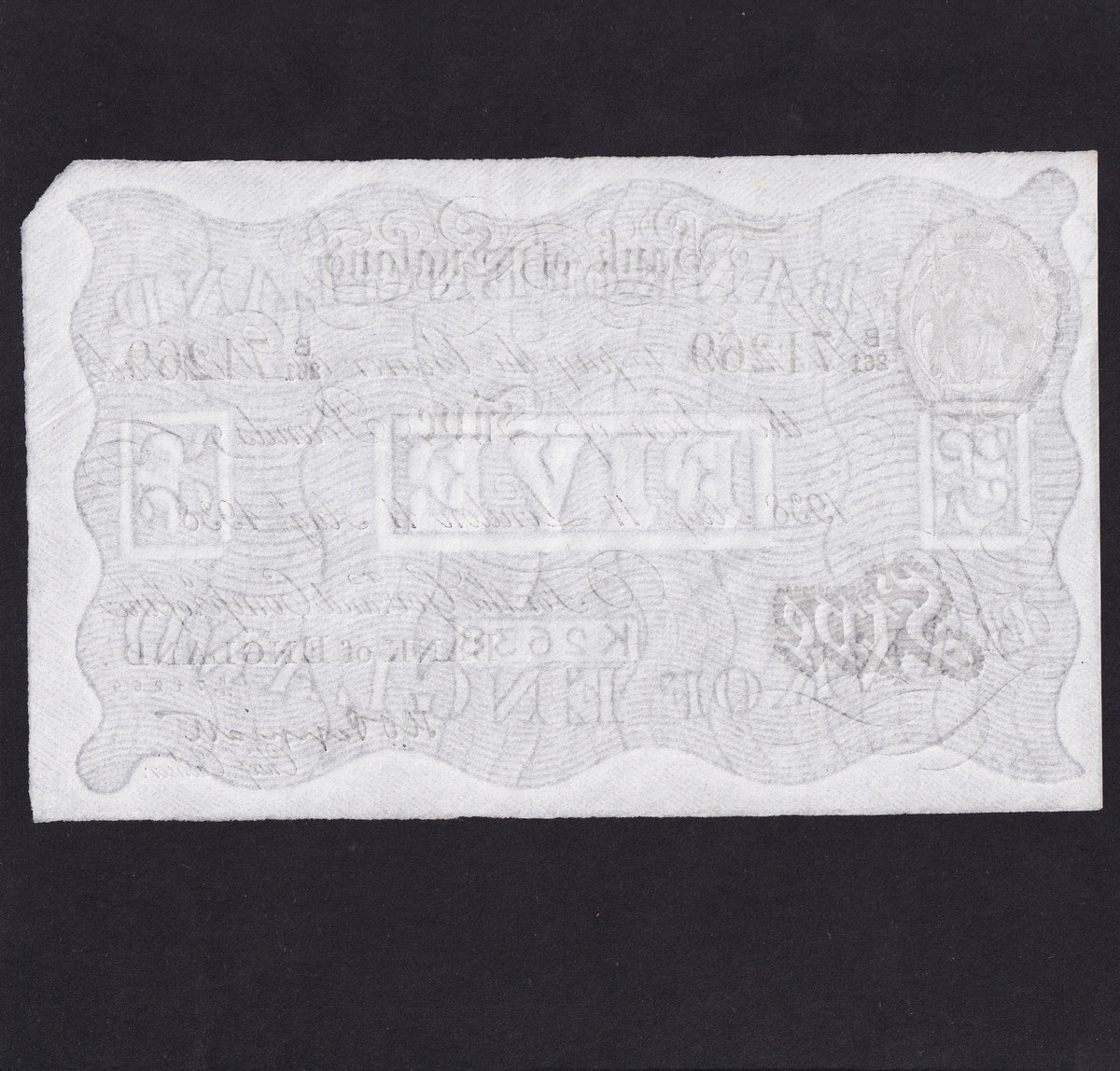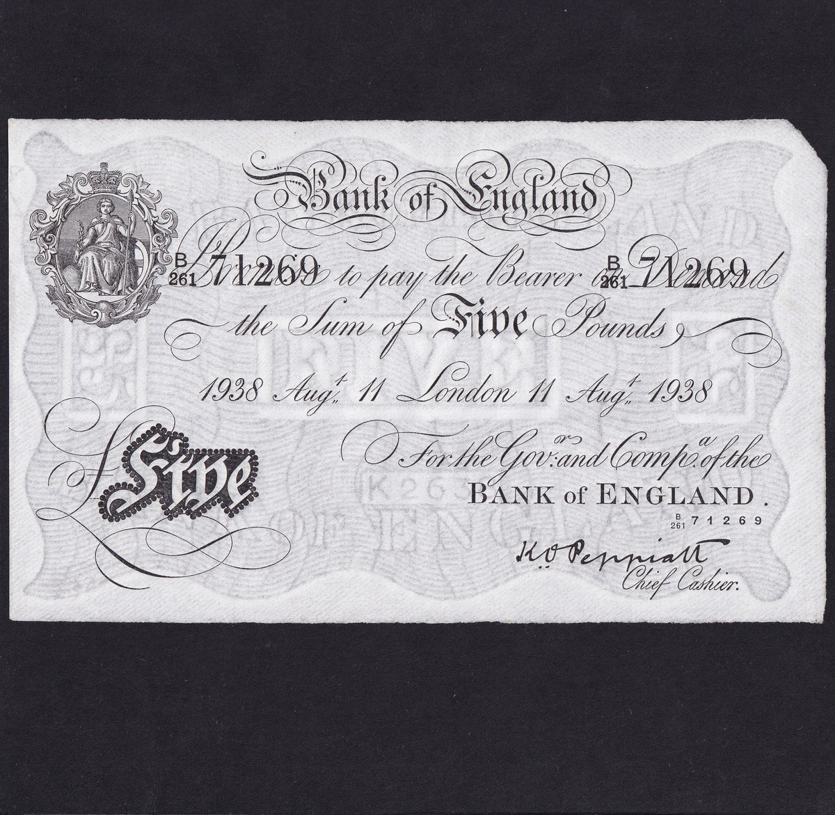 Bank of England (B241) Peppiatt, £5, 11 August 1938, B261 712269, serial number indents on reverse, A/UNC