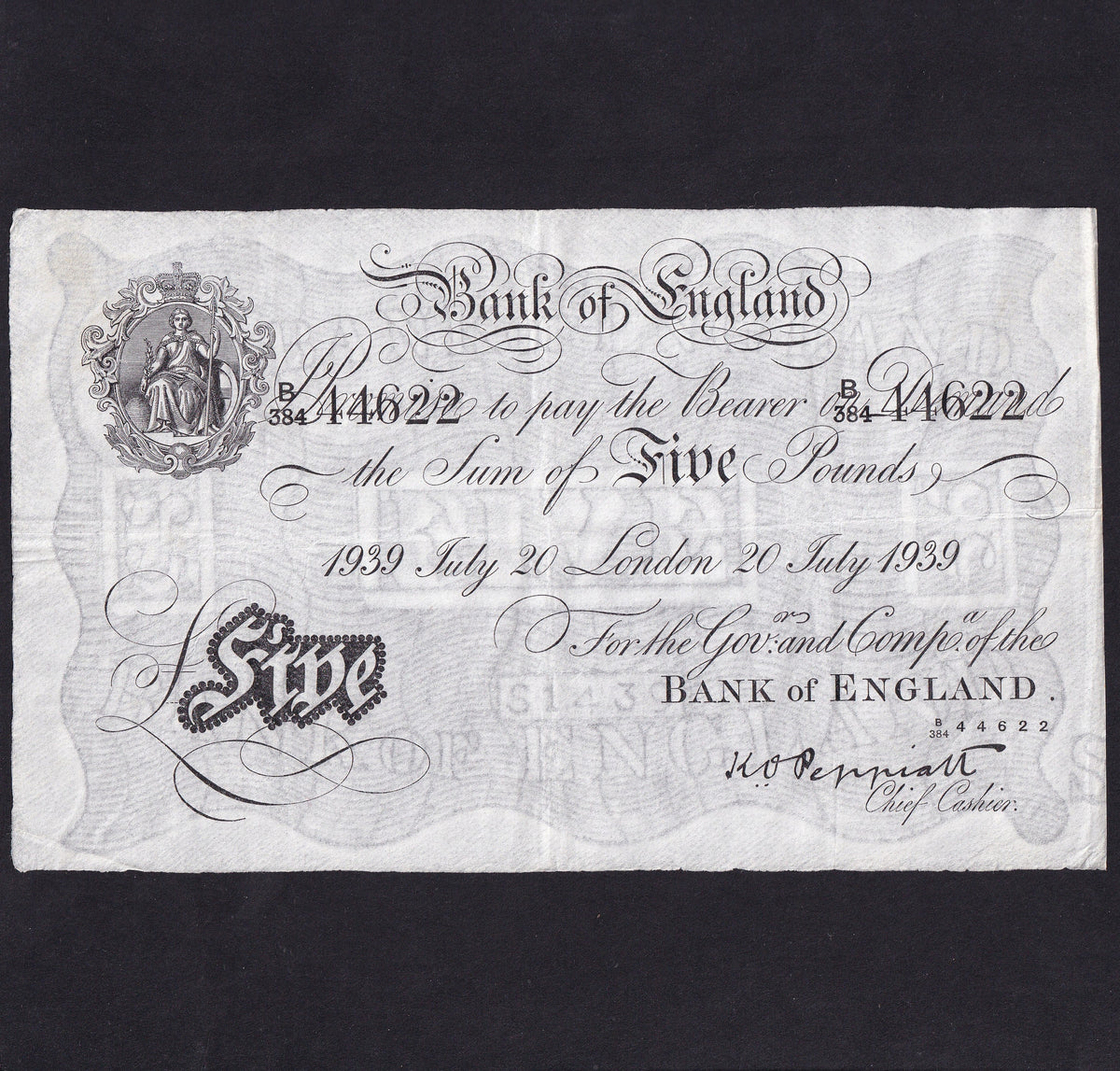 Bank of England (B241) Peppiatt, £5, 20th July 1939, B384 44622, VF