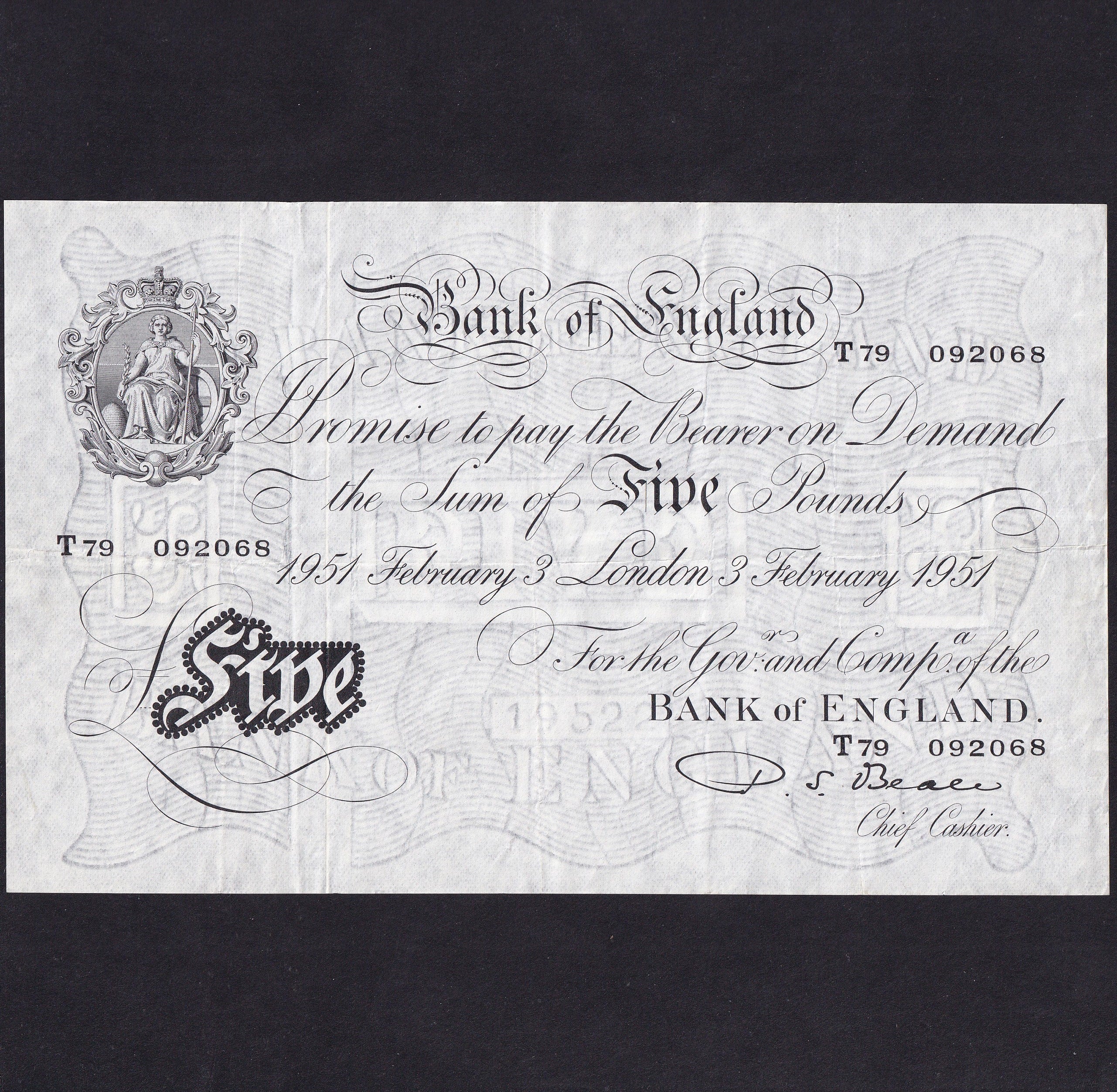 Bank of England (B270) Beale, £5, 3rd February 1951, T79 092068, Fine/VF