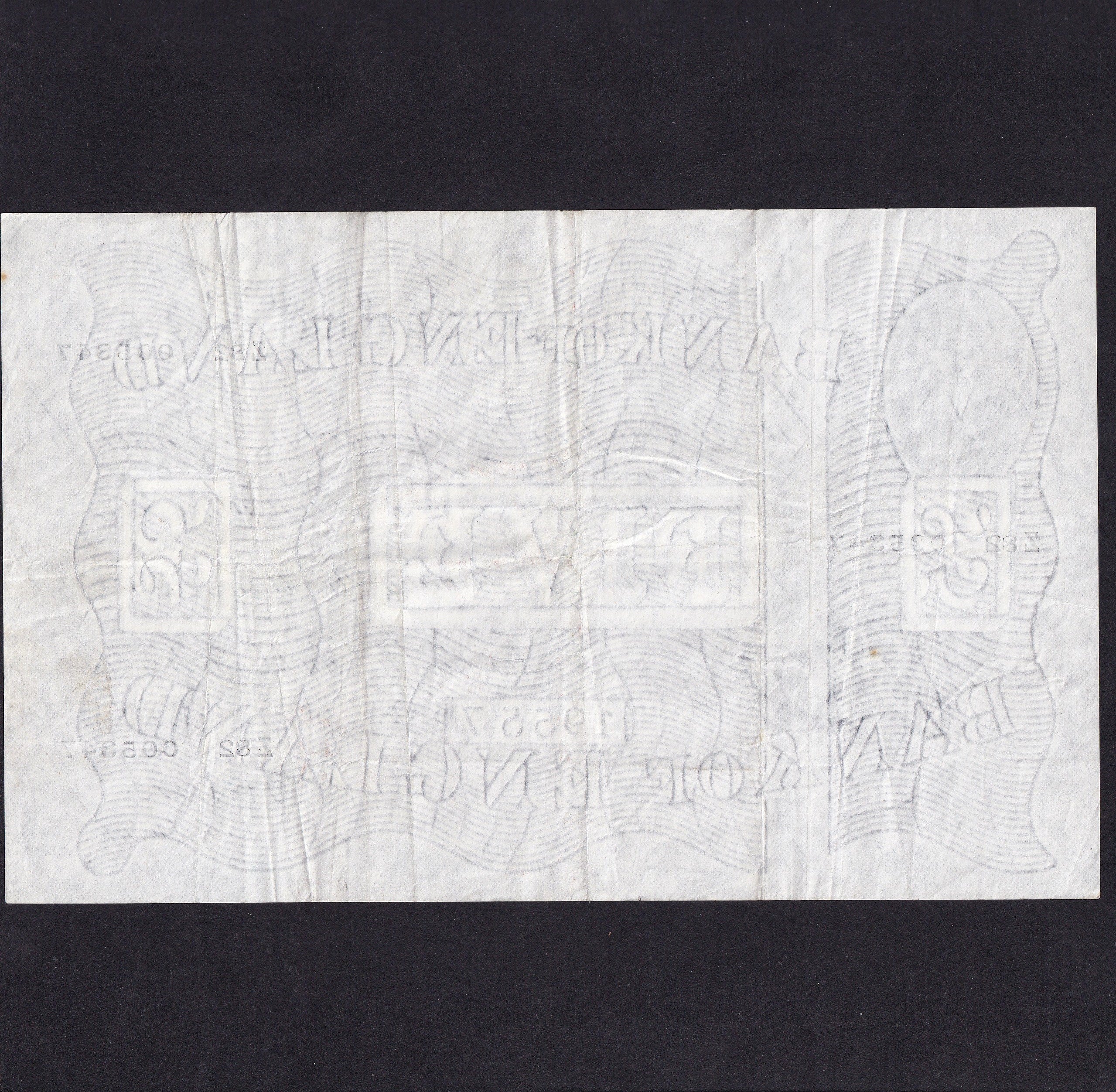 Decrease quantity for Bank of England (B275) O'Brien, £5, 26th May 1955, Z82 005347, Fine/VF
