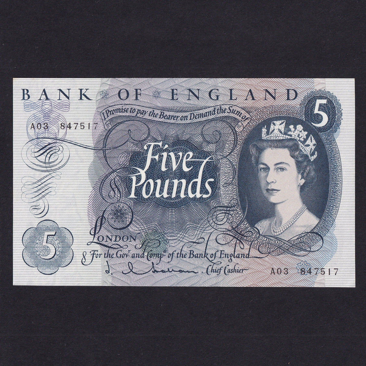 Decrease quantity for Bank of England (B297) Hollom, £5, A03, UNC
