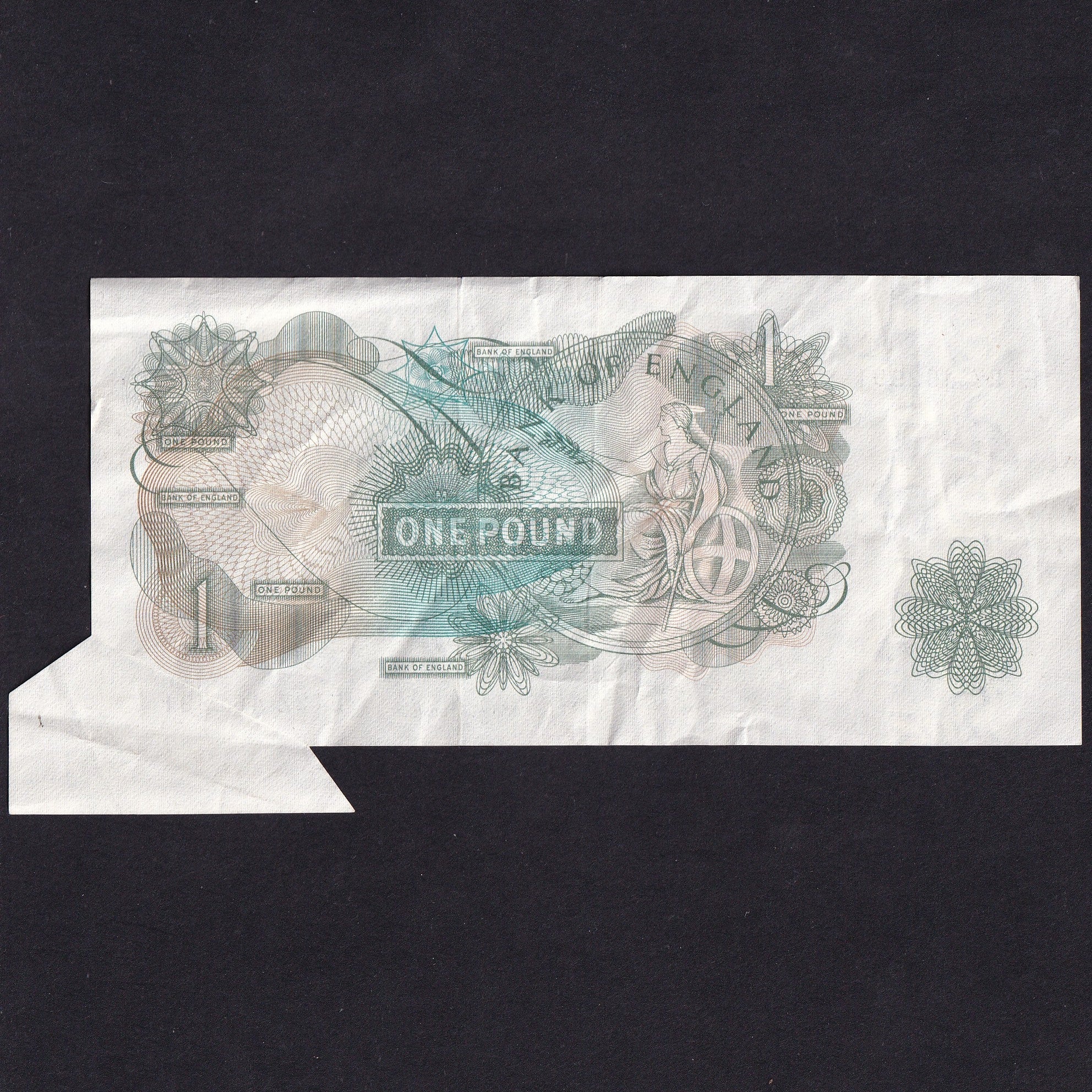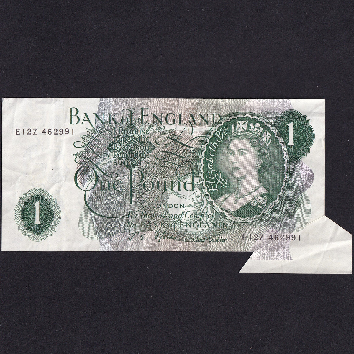 Decrease quantity for Bank of England (B301) Fforde, £1 error, extra paper, E12Z 462991, VF