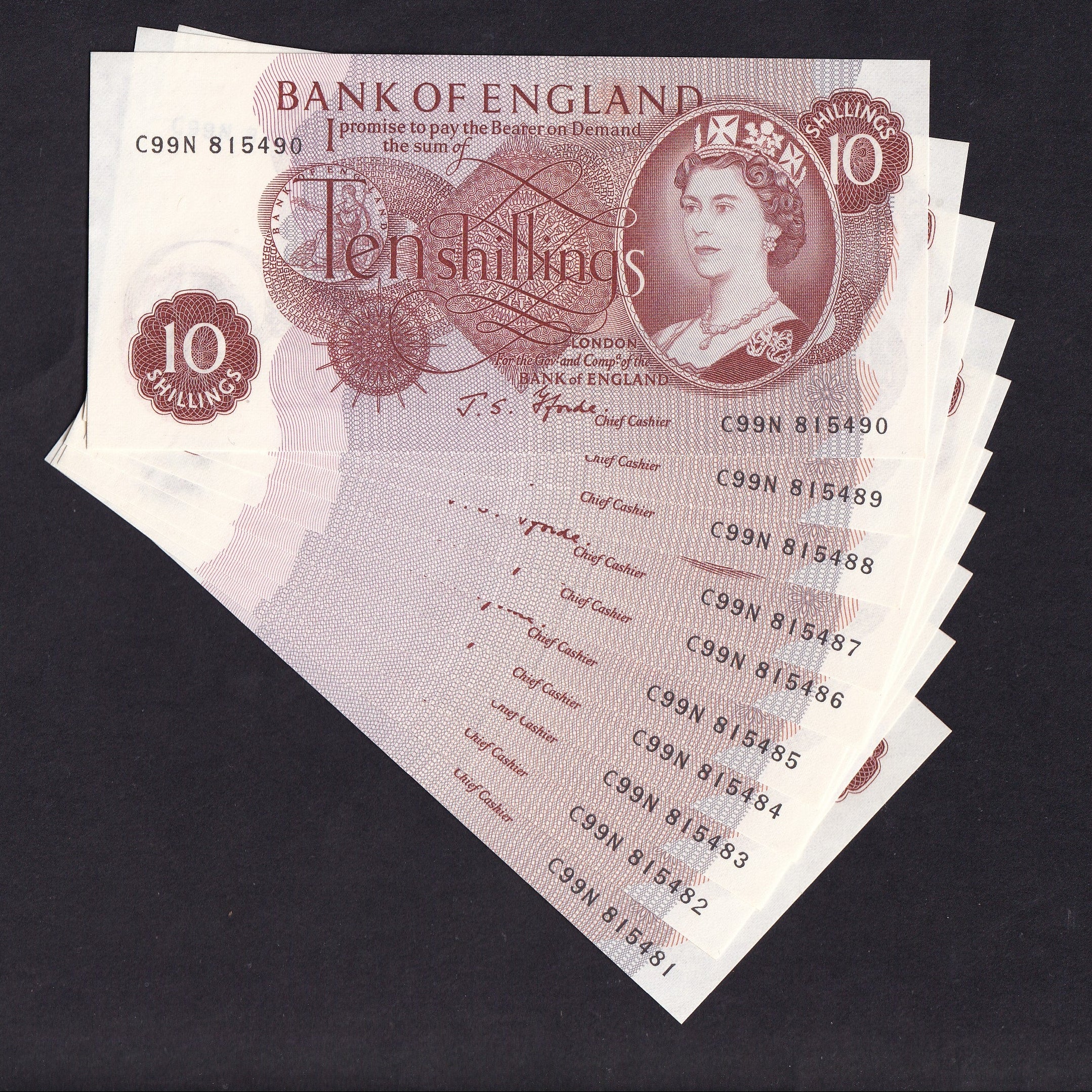 Bank of England (B310) Fforde, 10 Shillings, ten notes in sequence, C99N, UNC