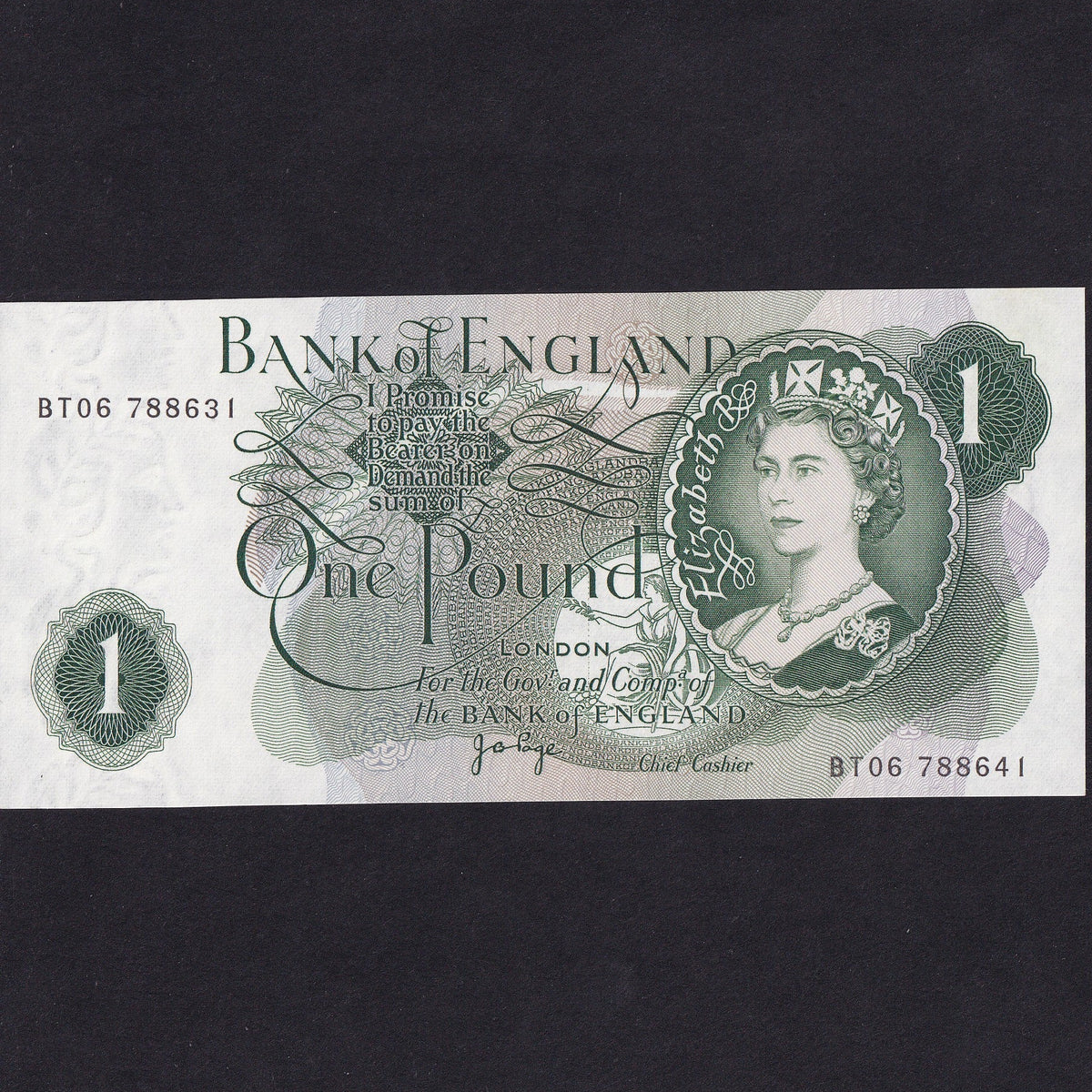Bank of England (B322) Page, £1 error, mismatched serial, BT06 788631/ 788641, UNC