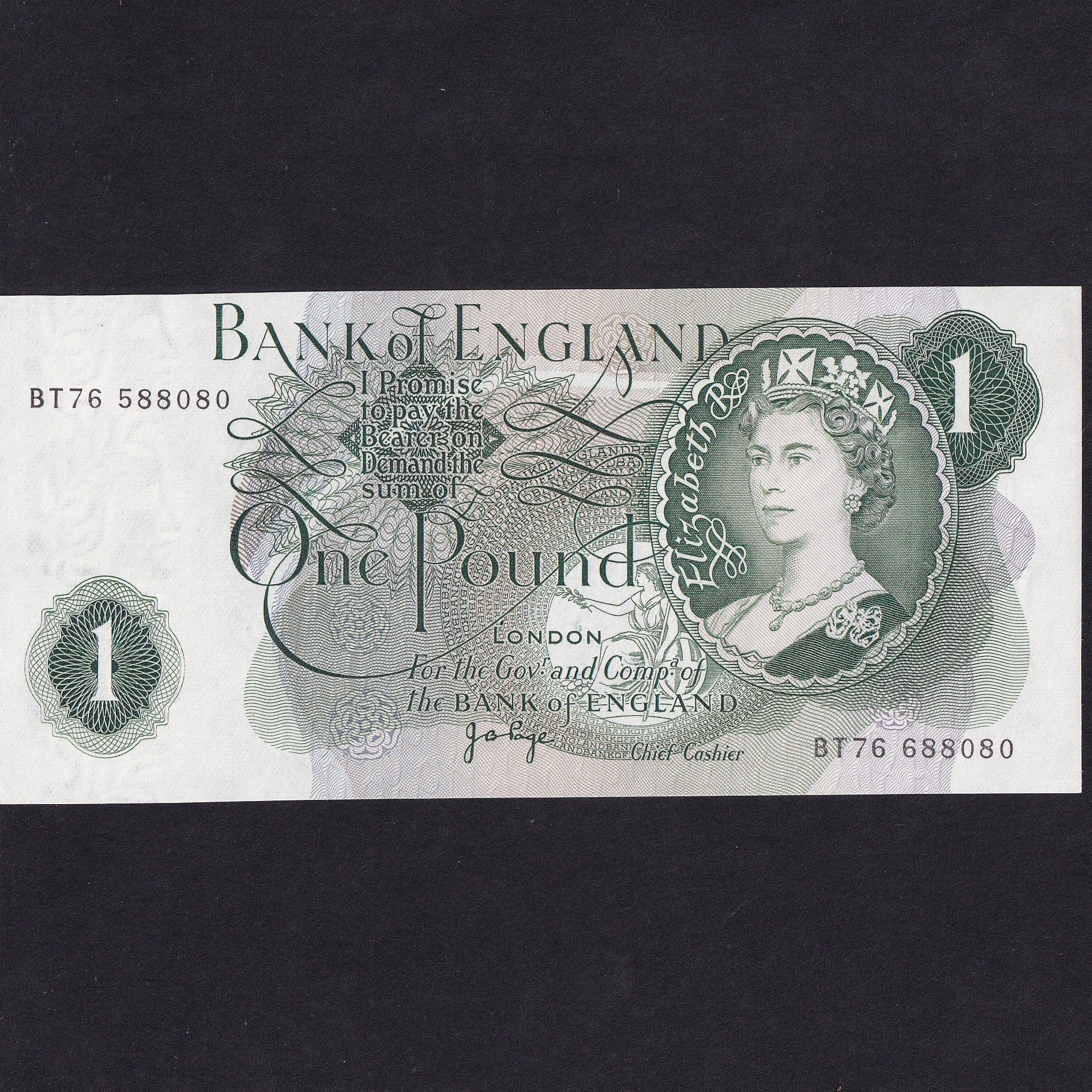 Bank of England (B322) Page, £1 error, mismatched serial, BT76 588080/ 688080, UNC