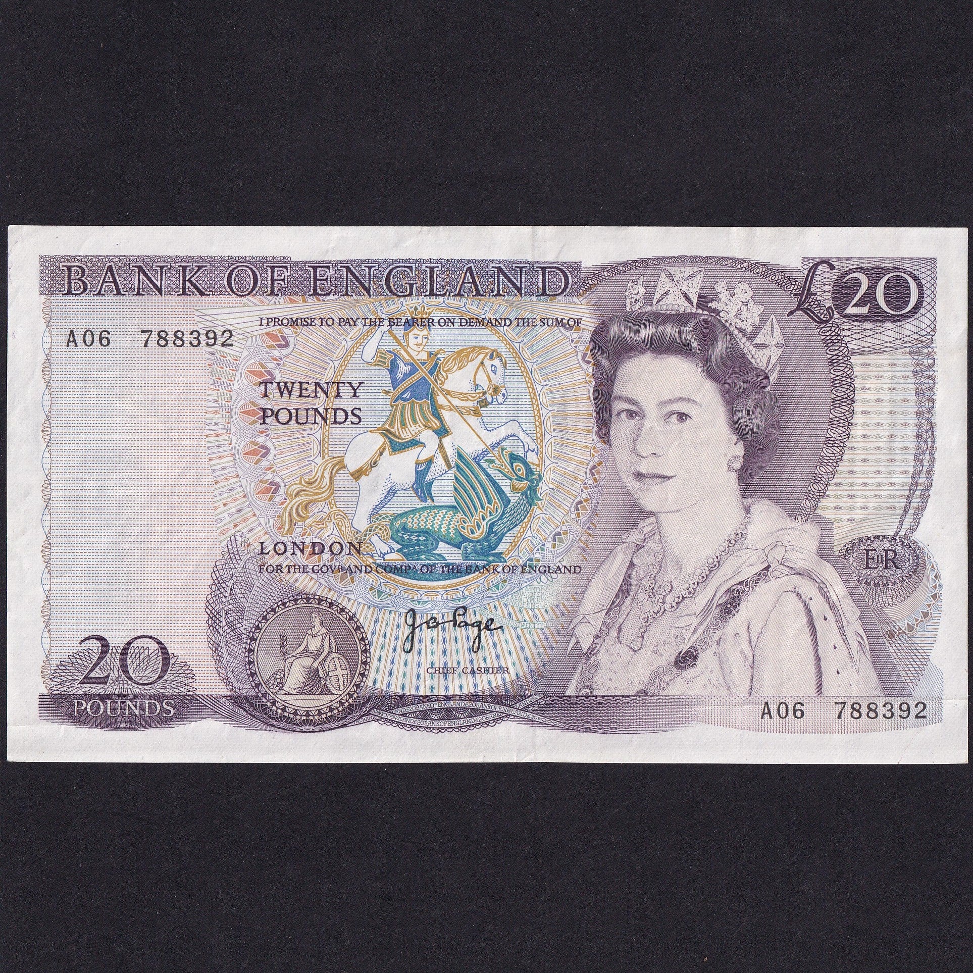Decrease quantity for Bank of England (B328) Page, £20, A06 788392, first million, VF