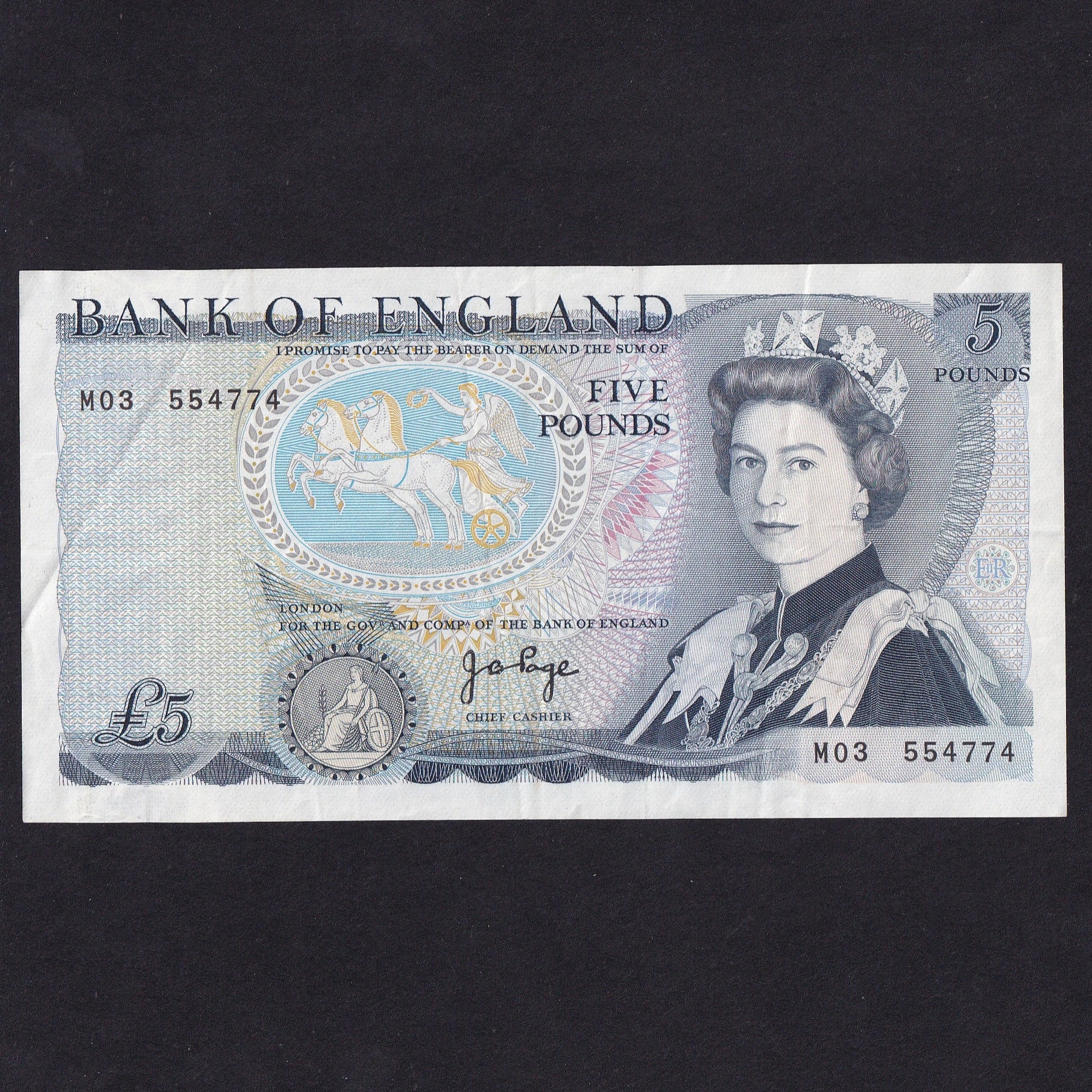 Bank of England (B333) Page, £5 replacement, M03 554774, Fine/VF