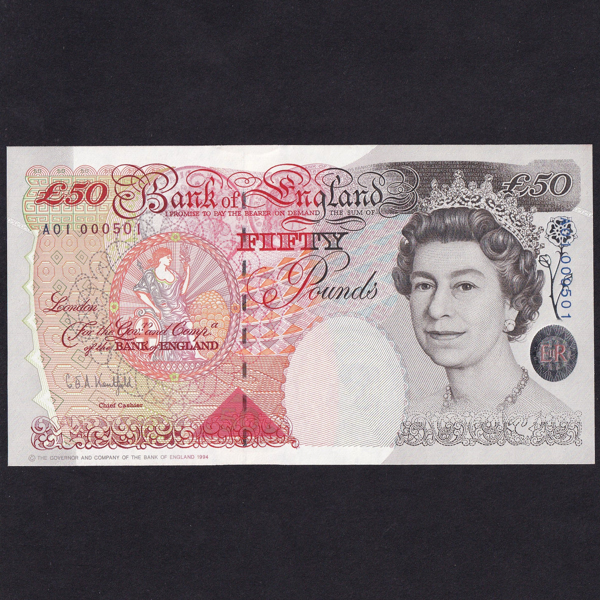 Bank of England (B377) Kentfield, £50, first million from circulation, A01 000501, UNC