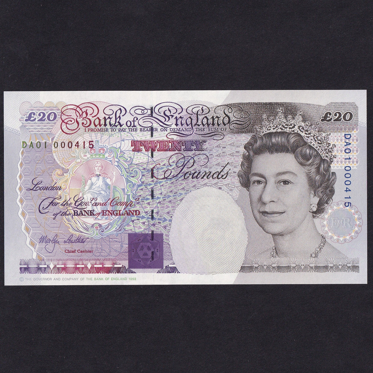Bank of England (B385/ C147) Lowther, £20, DA01 000415, normally the first 500 notes go to bank staff this did, UNC