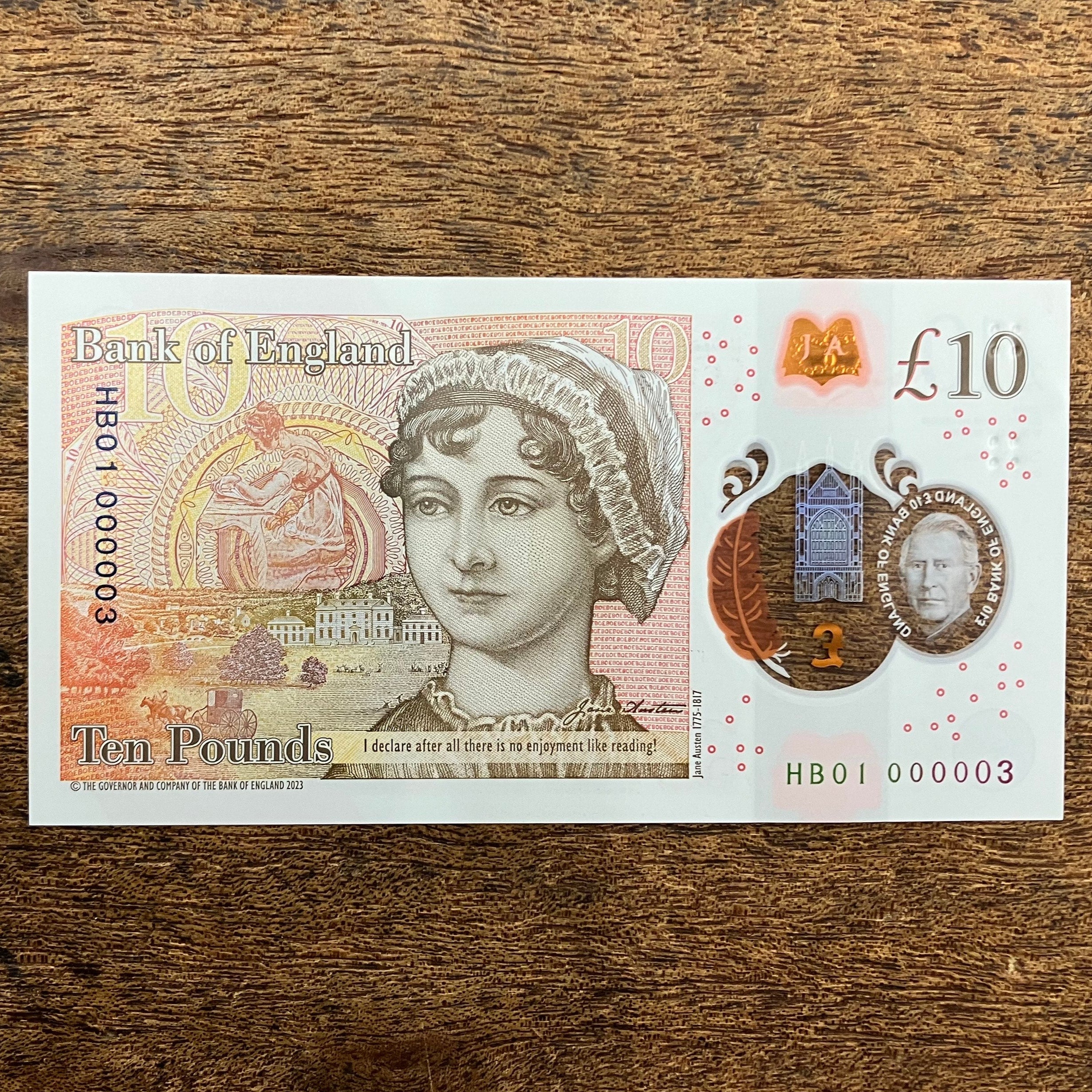 Bank of England (B420) £10, HB01 000003, second lowest number available, first million, King Charles III, UNC