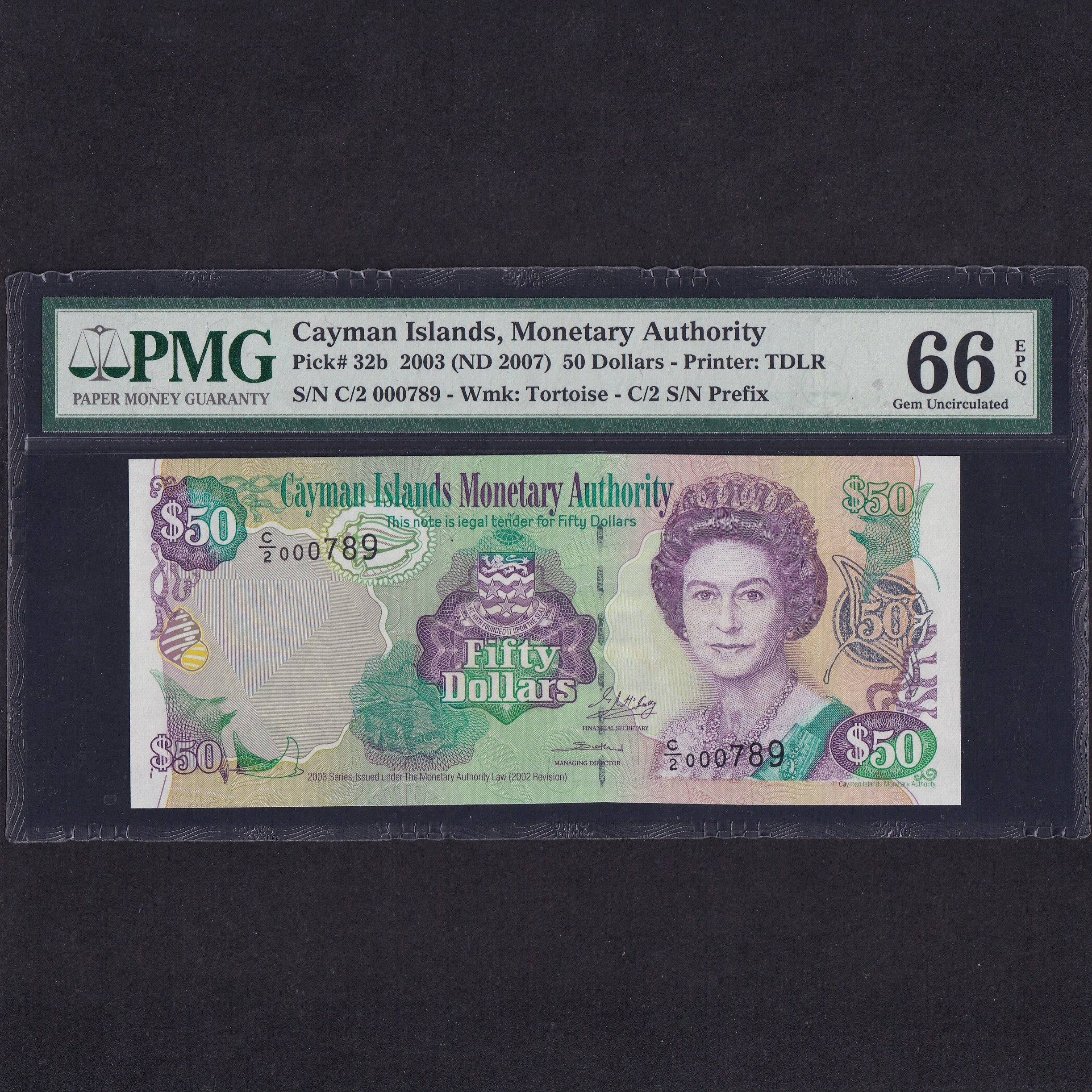 Cayman Islands (P32) $50, 2003, C/2 000789, PMG66, UNC