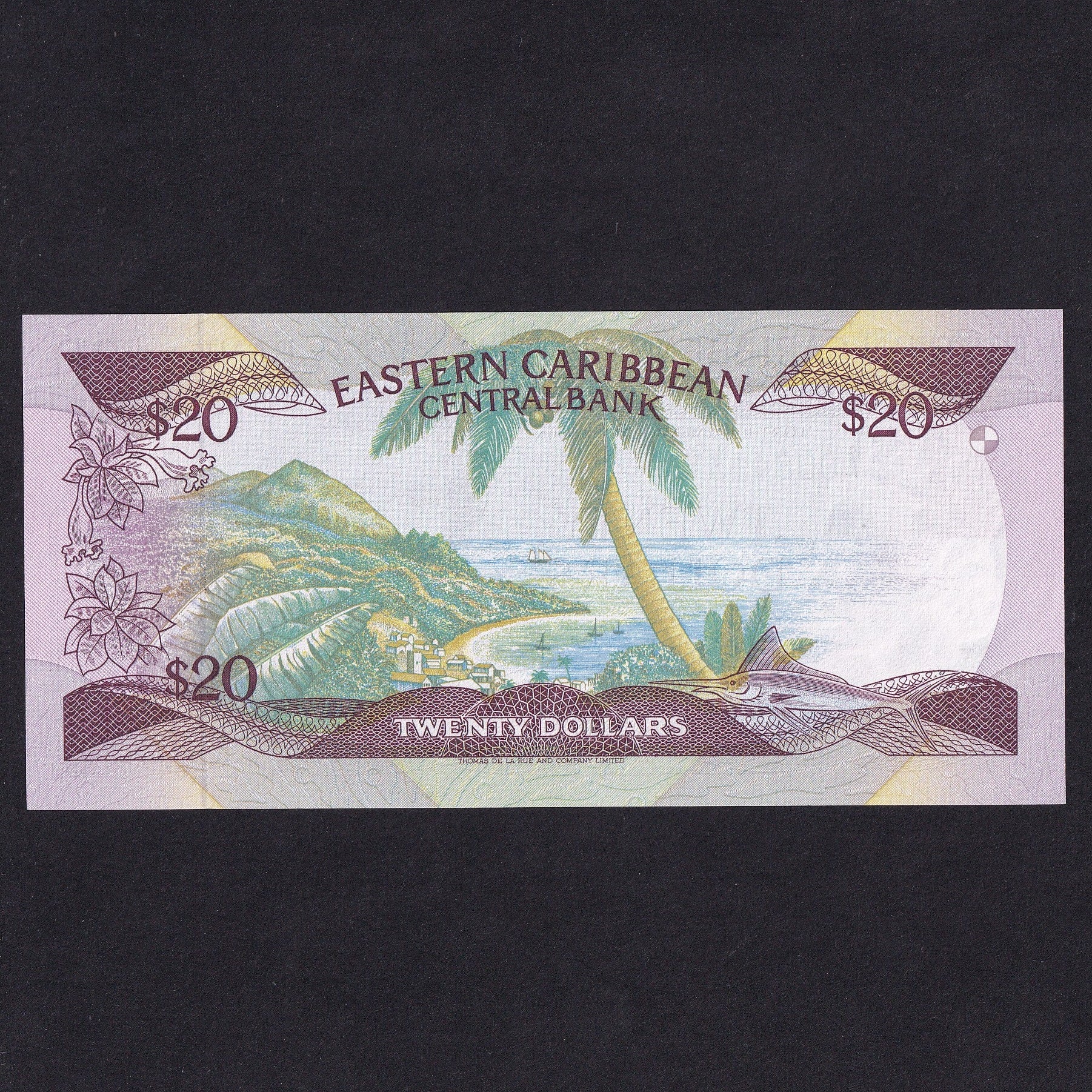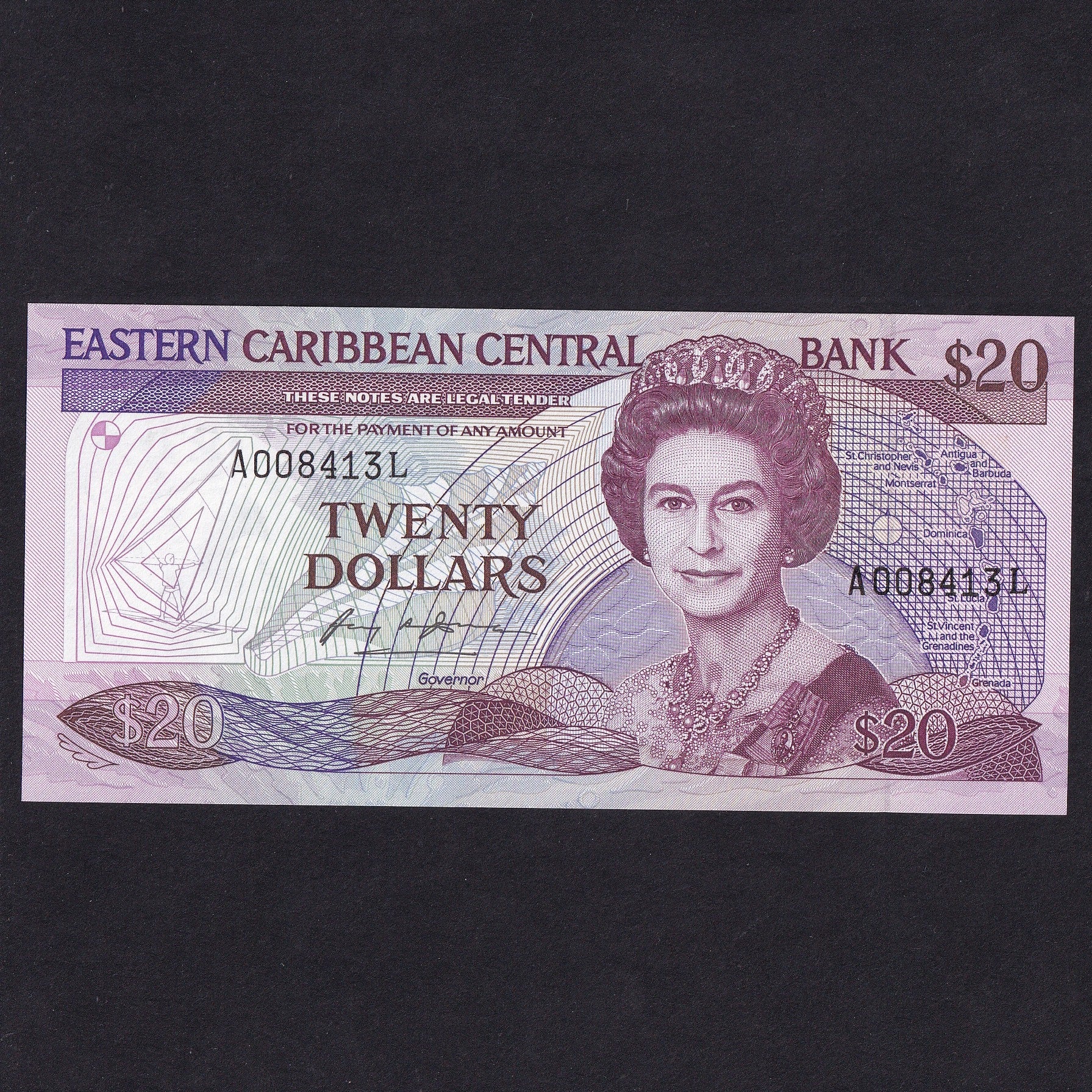 East Caribbean (P19L) $20, A008413L, suffix L St Lucia signature 1, Anguilla not named, UNC