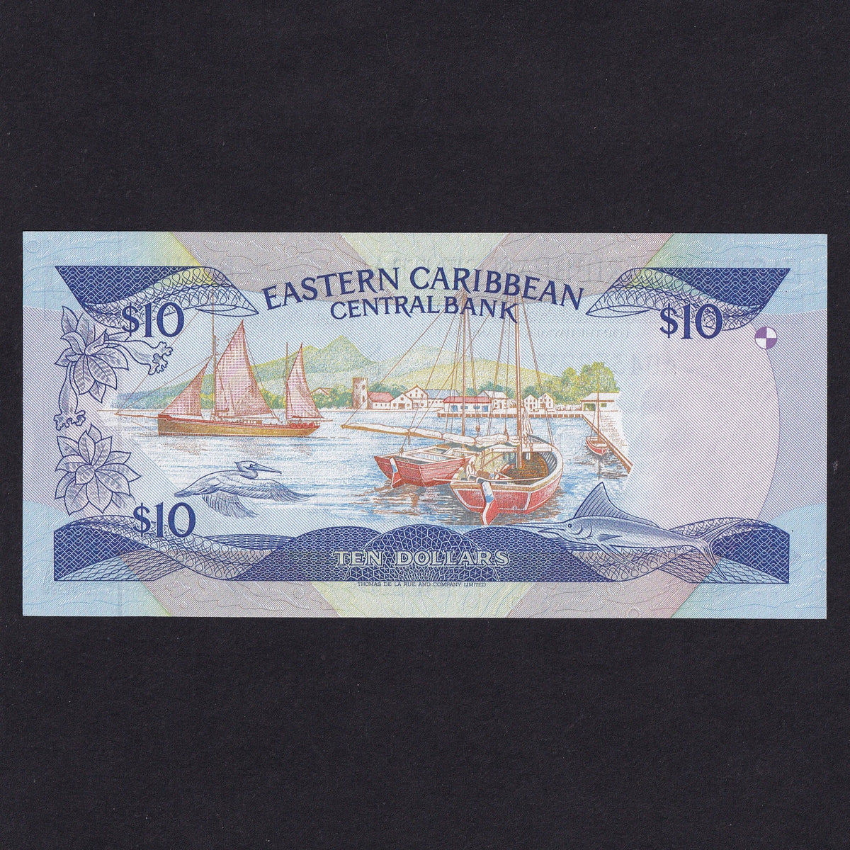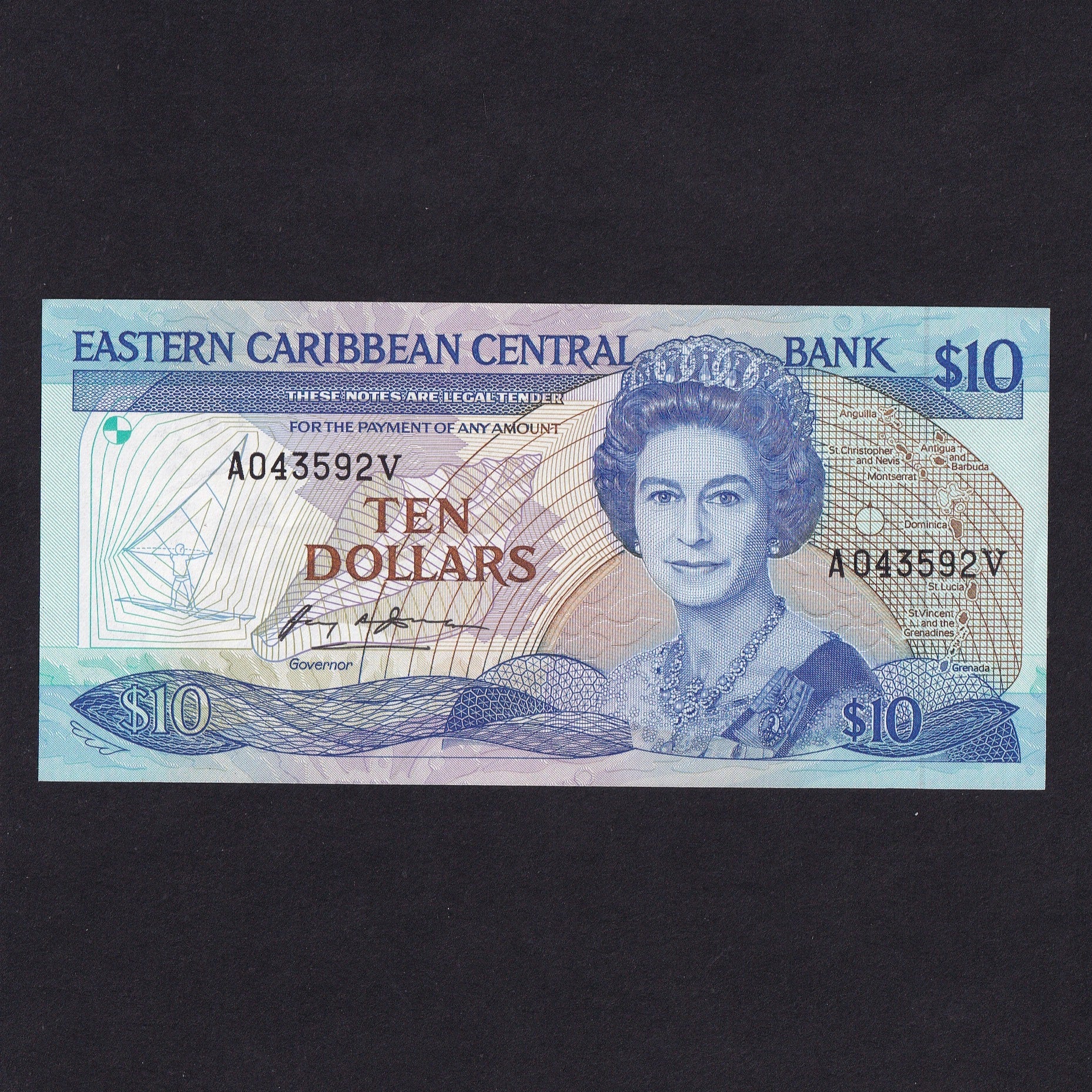 East Caribbean (P23V1) $10, St Vincent, A043592V, Anguilla names, signature 1, UNC