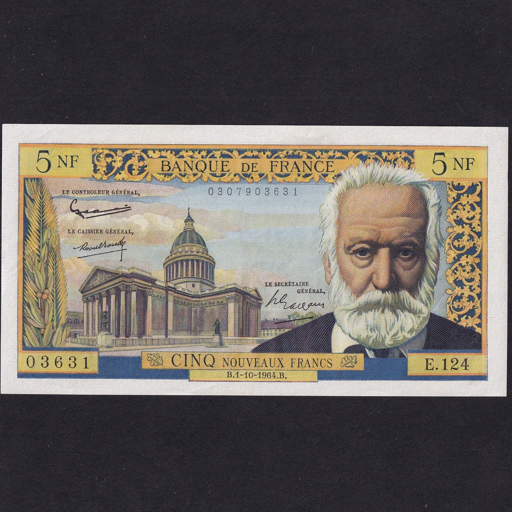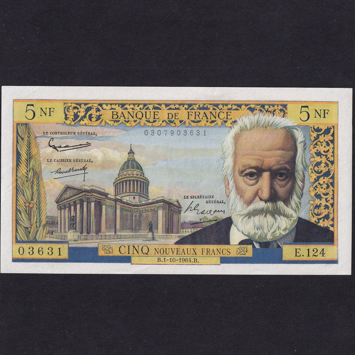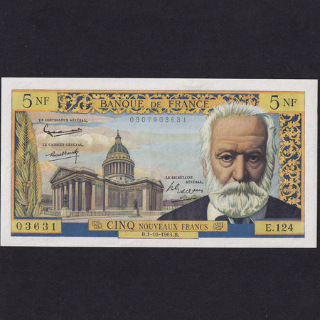France (P141a) 5 NF, 1st October 1964, Victor Hugo, E.124 03631, Good EF