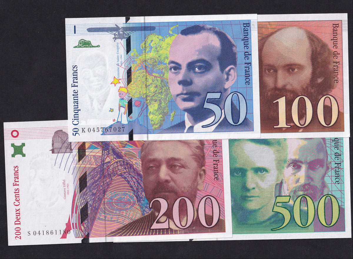 France (P157Aa, P158, P159b & P160a) 50 Fr (1997), 100 Fr (1997), 200 Fr (1996) & 500 Fr (1994) type set, 4 notes, UNC