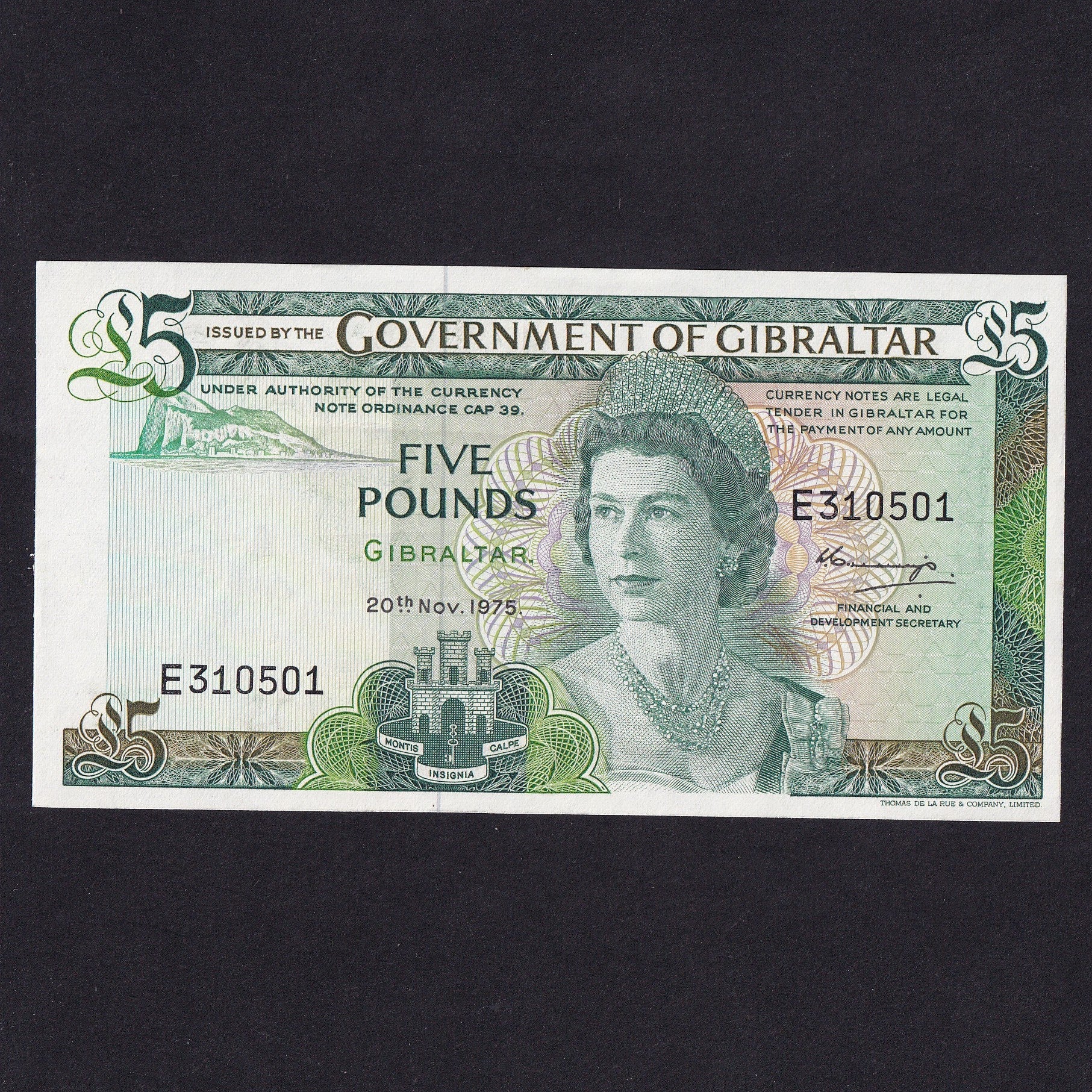Gibraltar (P21a) £5, 20th November 1975, E310501, UNC