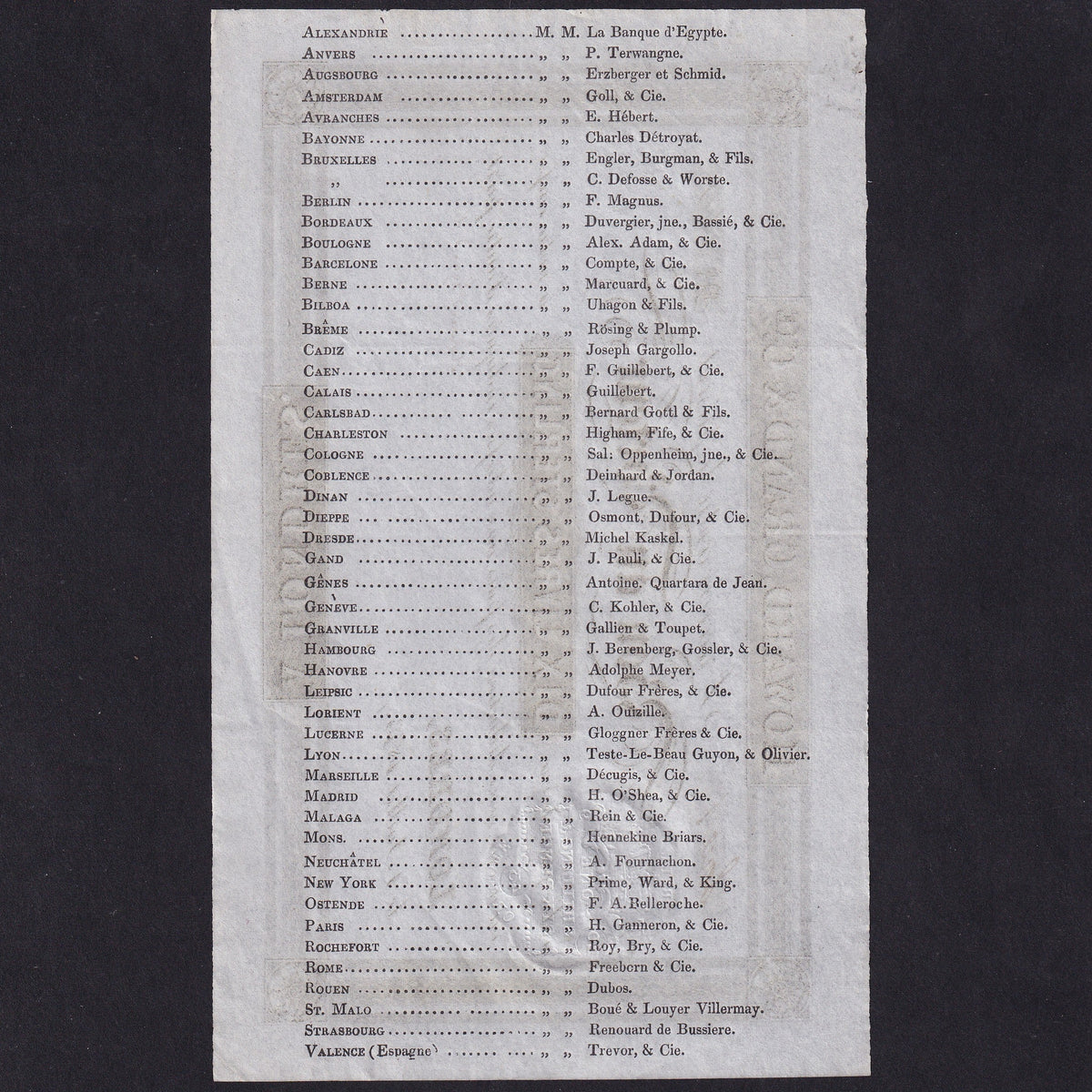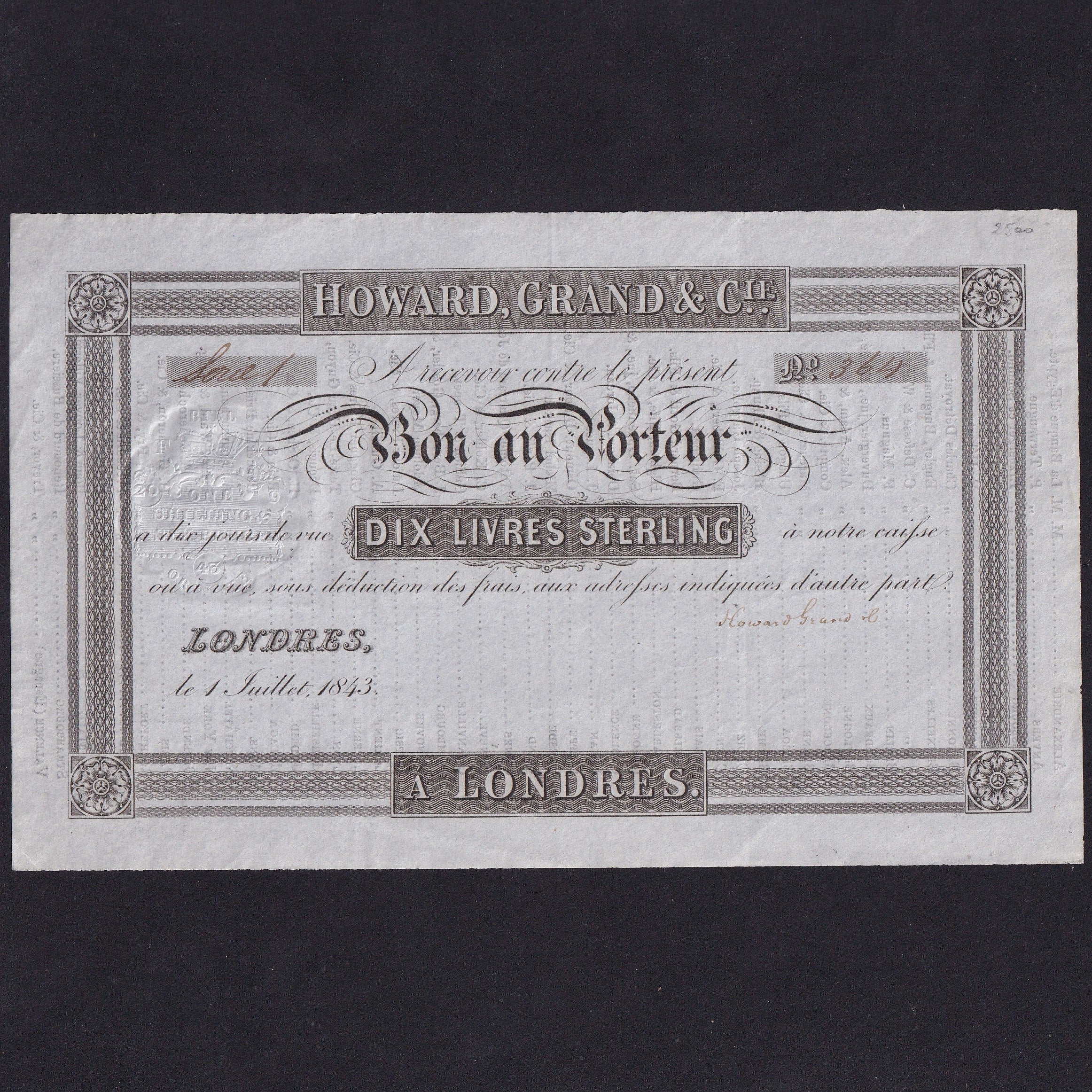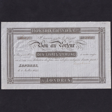 Howard, Grand & Cie., 10 Livres Sterling, 1843, unissued, this is one of the earliest travel cheques GDEF