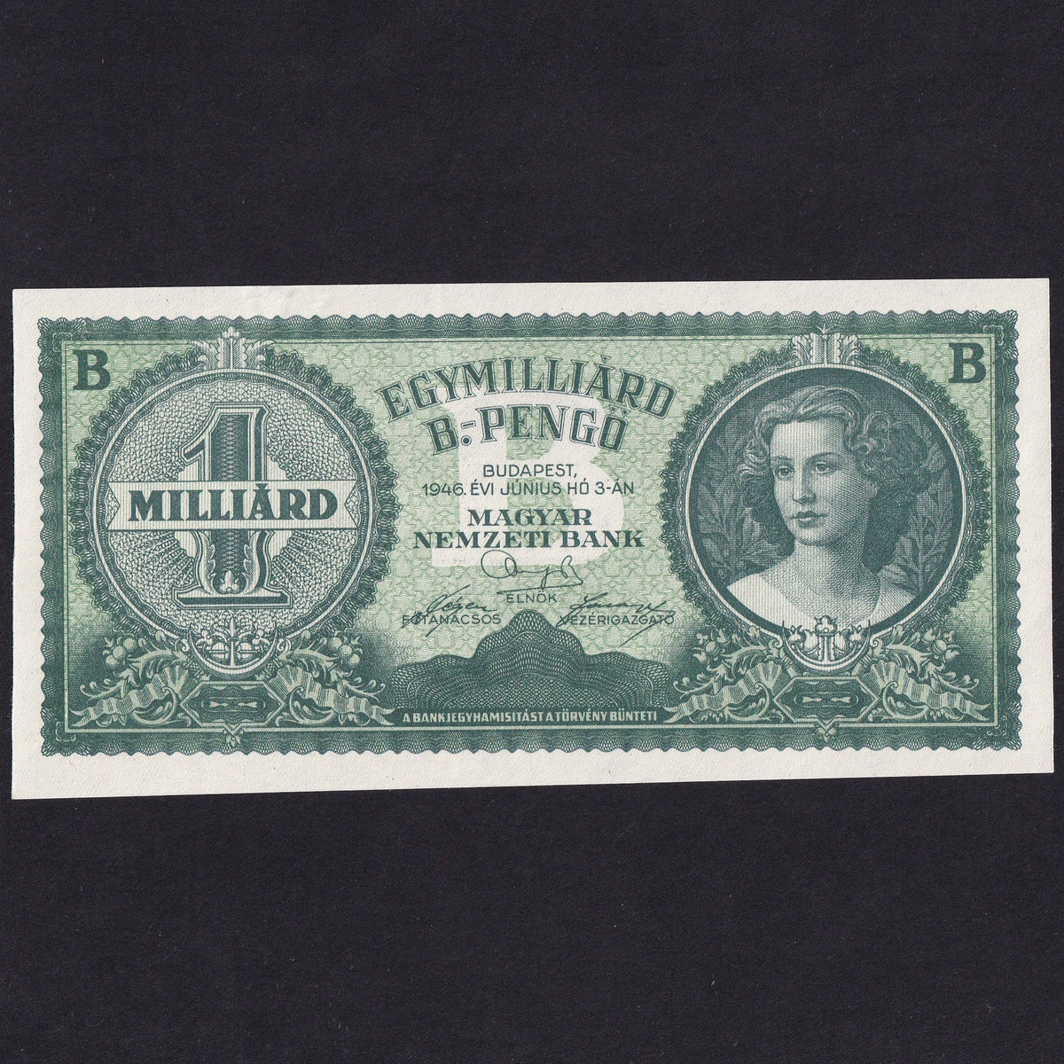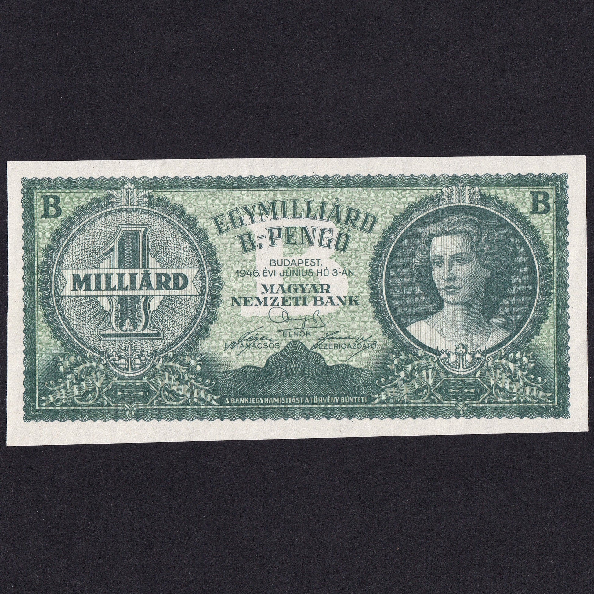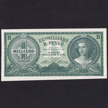 Hungary (P137) 1 Milliarde 'B' Pengo, 1946, highest denomination produced but not issued, Good EF