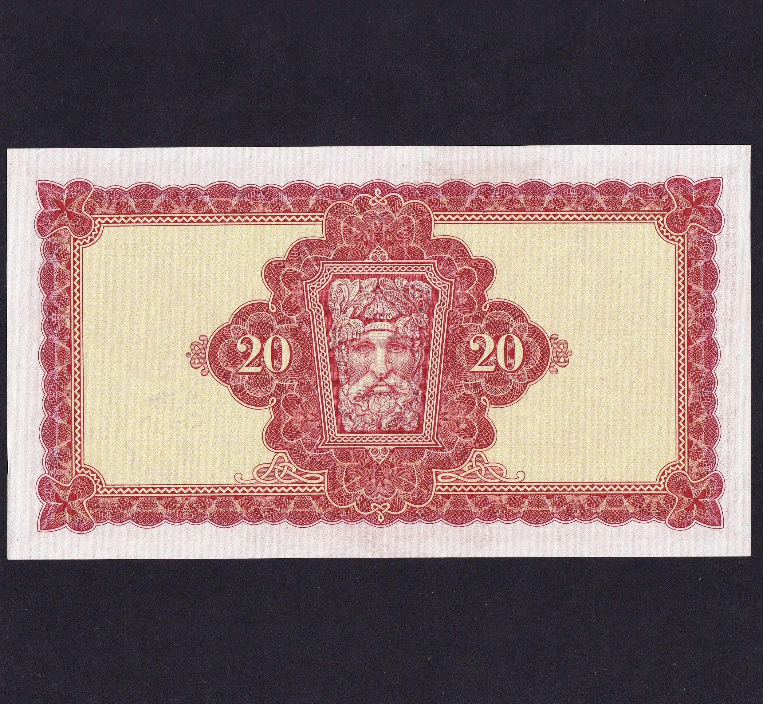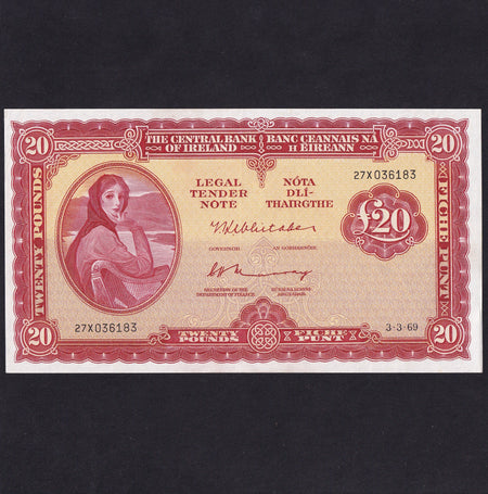 Ireland (P67b) £20, 3rd March 1969, first date, Whitaker/ Murray, 27X 036183, PMI LTN57a, pressed, Good VF