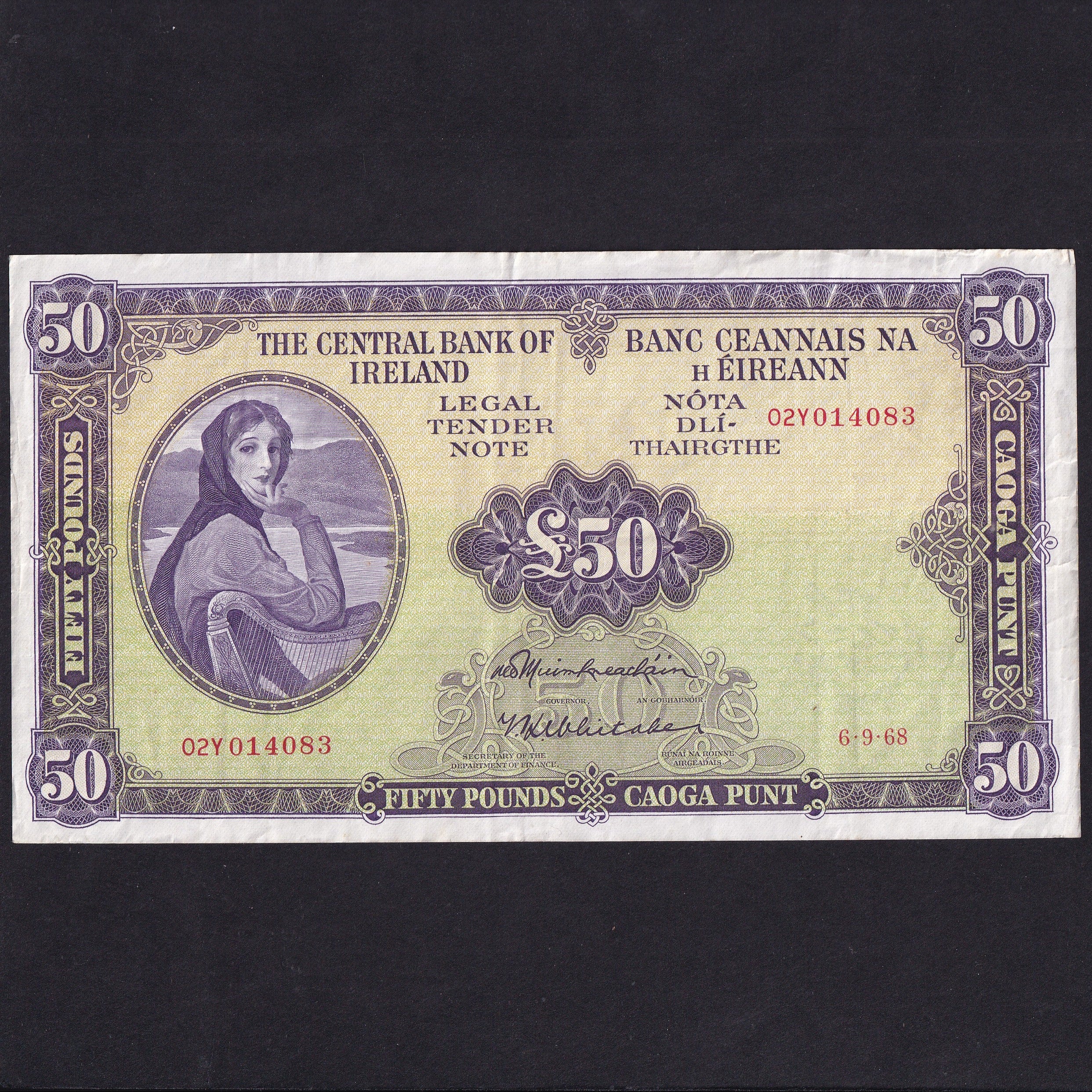 Ireland (P68a) £50, 6th September 1968, last date of signature, 02Y 014083, PMI LTN52a, VF but biro marks reverse