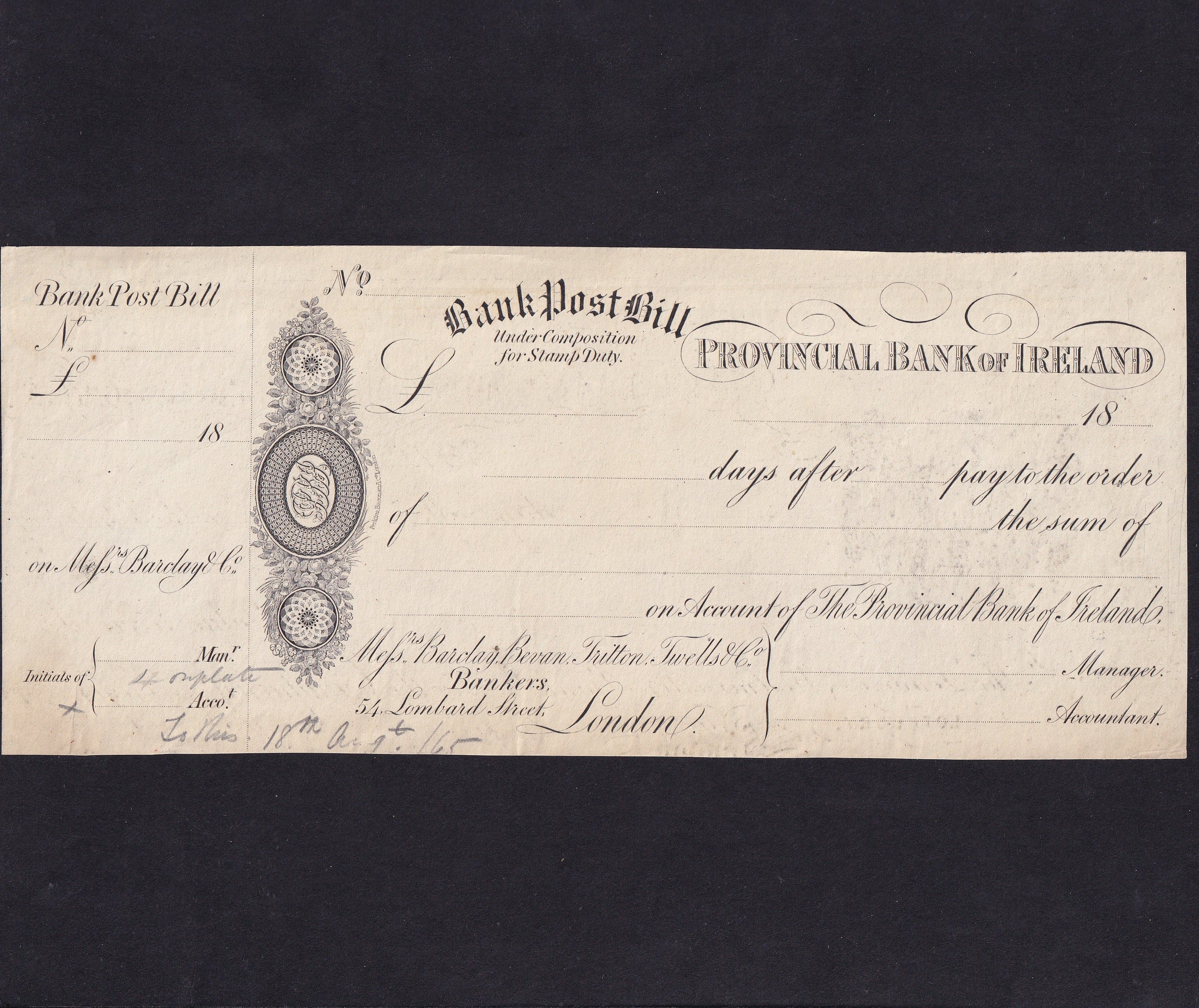 Ireland, Provincial Bank of Ireland, Proof Bank Post Bill, 18xx, EF