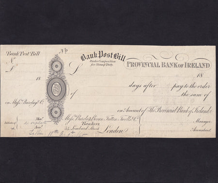 Decrease quantity for Ireland, Provincial Bank of Ireland, Proof Bank Post Bill, 18xx, EF
