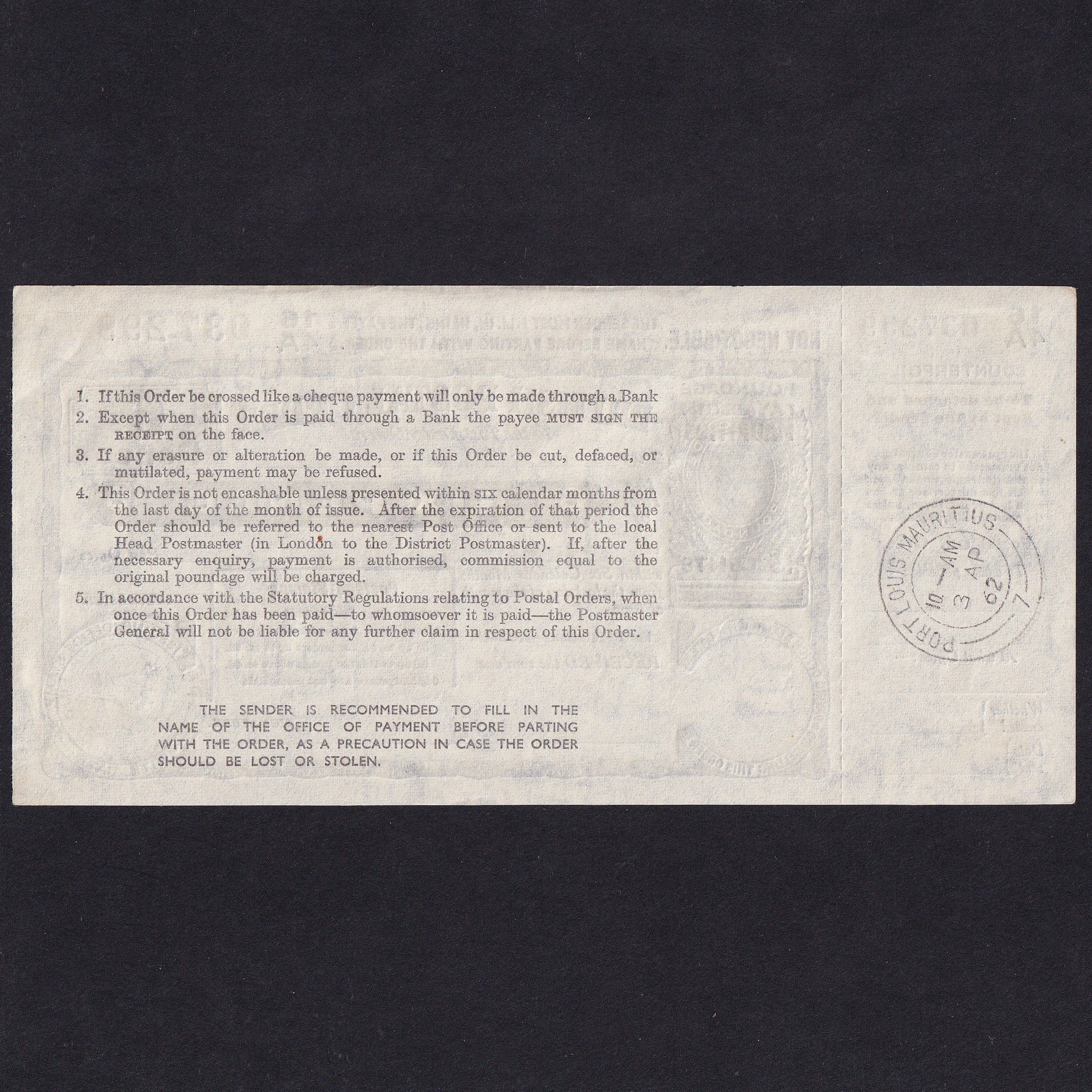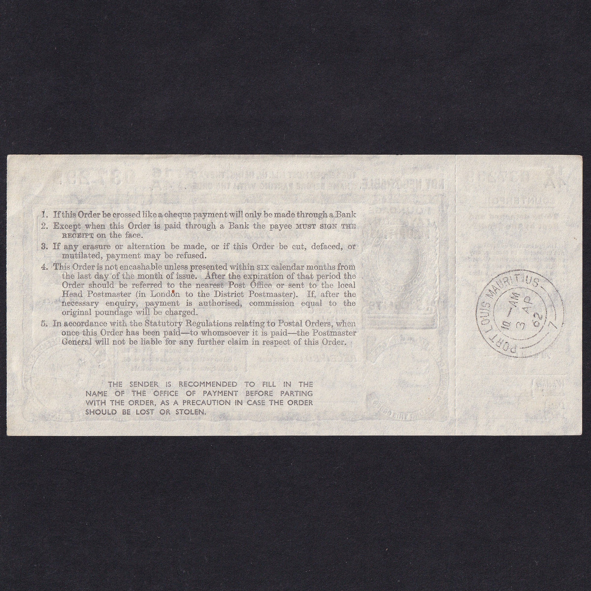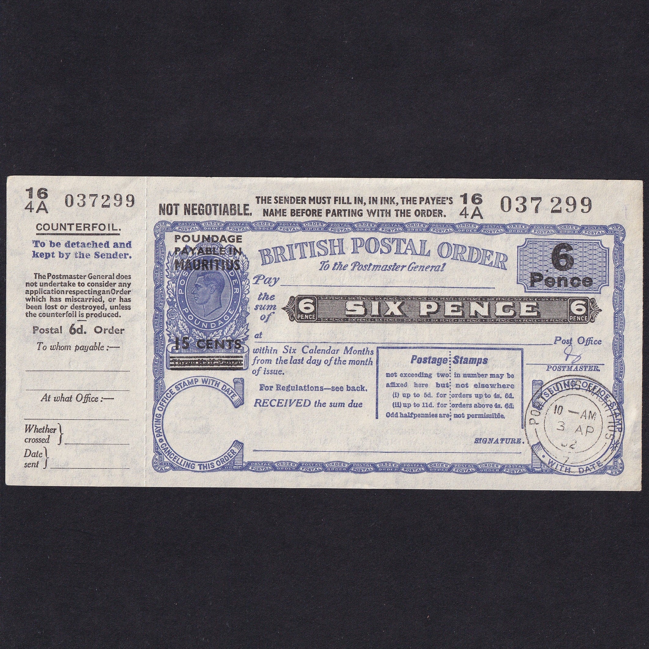 Mauritius, 6 Pence Postal Order, 1962, KGVI, 64A 037299, ER watermark, Good EF