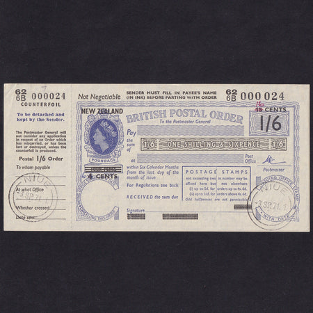 Increase quantity for New Zealand, 1/6d Postal Order, 1971, 626B 000 0024, QEII, Good EF