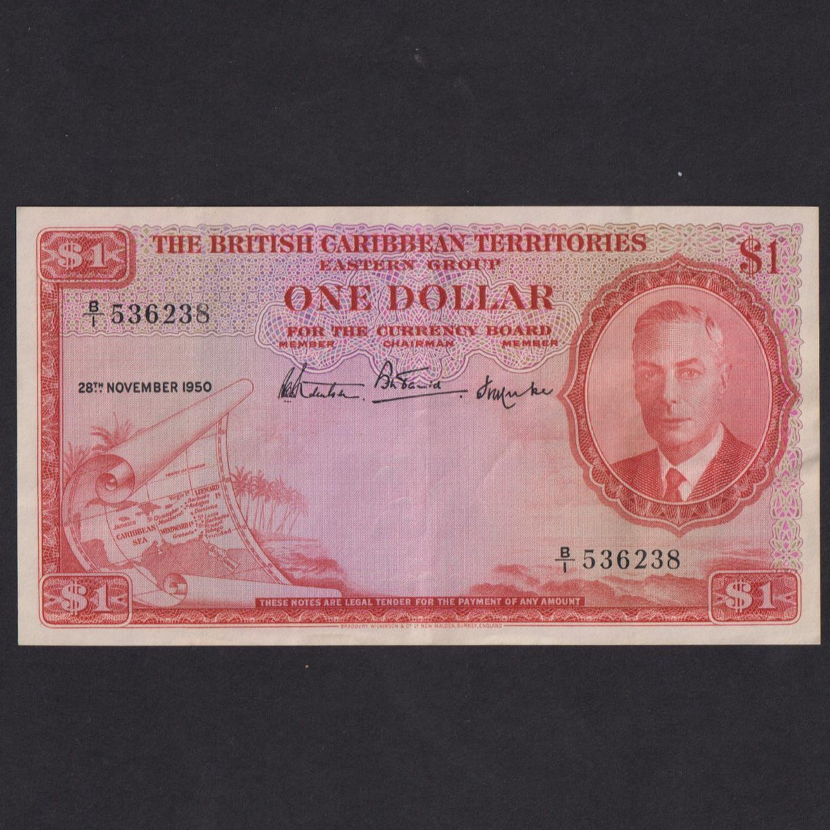 British East Caribbean (P1) $1, 28th November 1950, King George VI, B/1 536238, A/EF