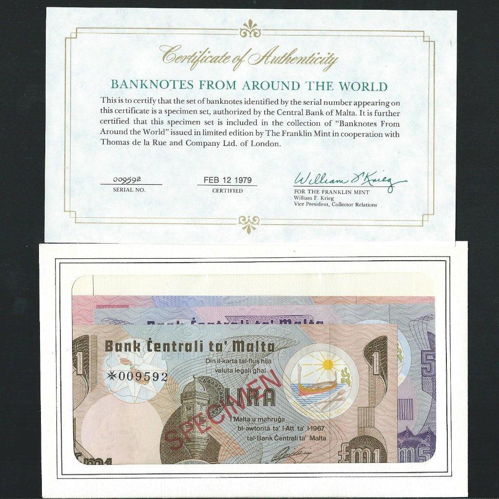 Malta (PCS1) 1- 10 Liri collector's specimen set, 1979, No 009592, Franklin Mint, UNC