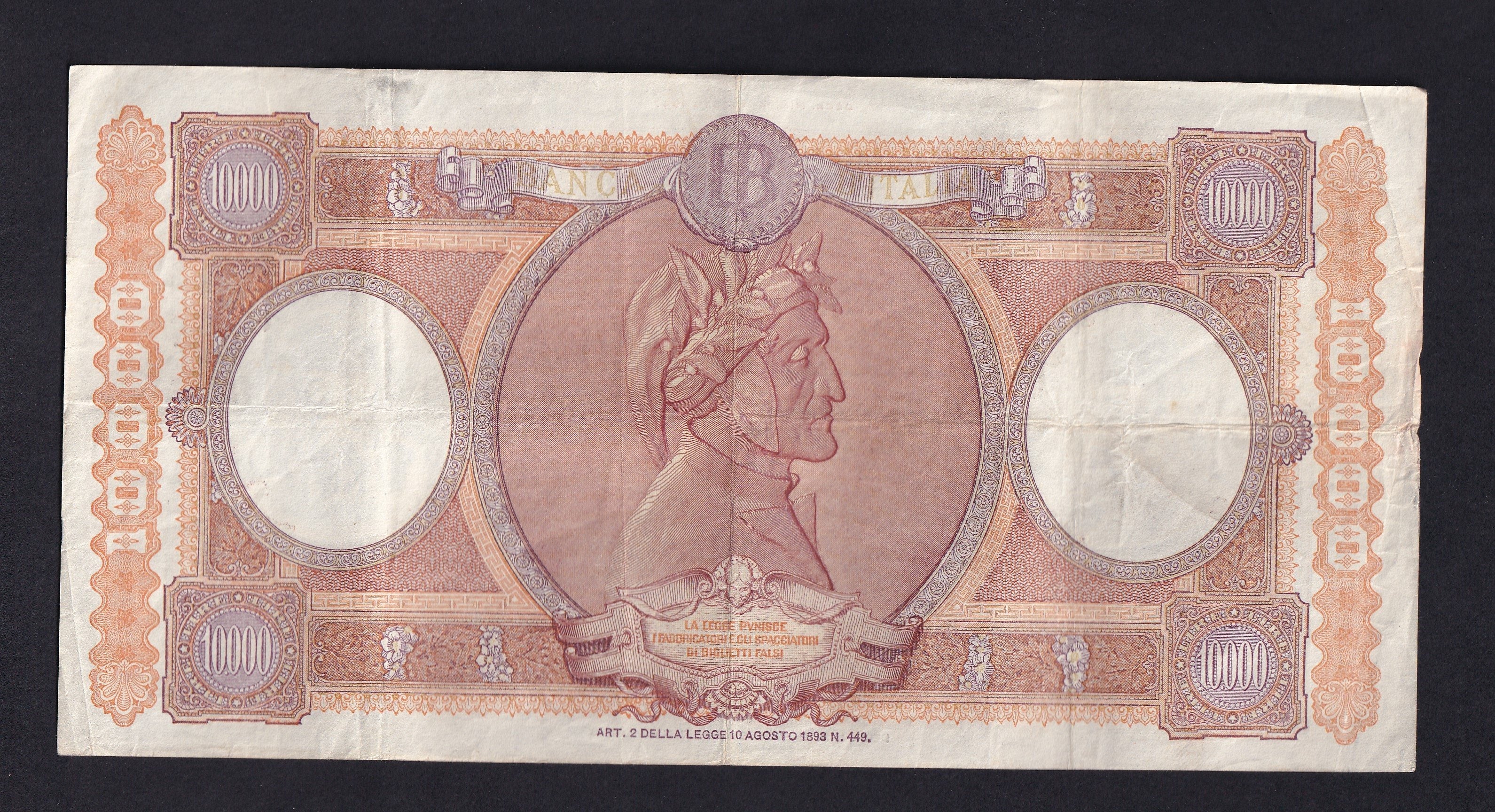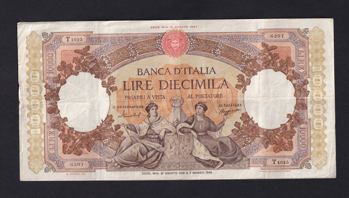 Italy (P.89c) 10,000 Lire, 21st August 1959, MENICHELLA/BOGGIONE T1625, slight rust, Good VF