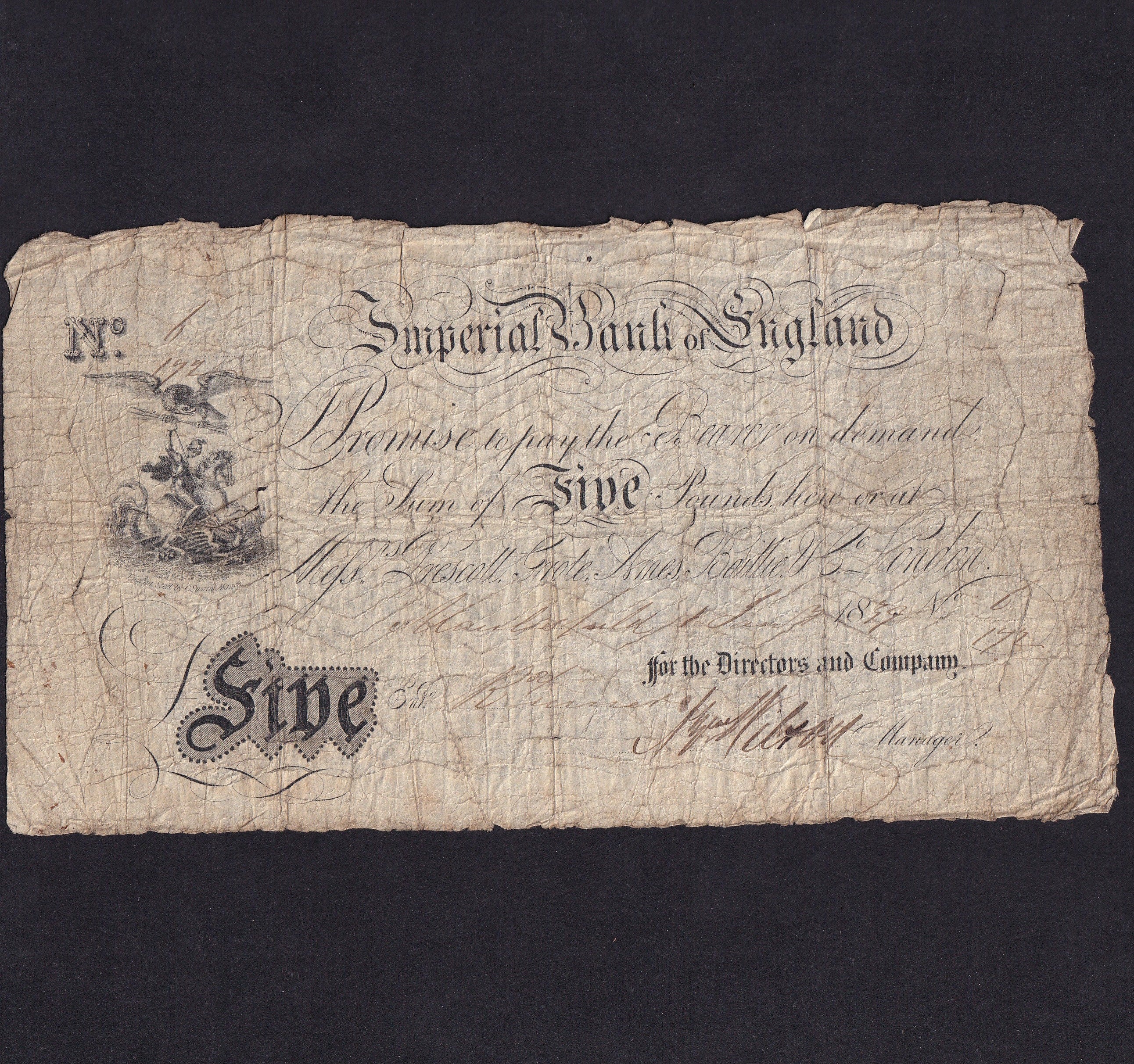 Provincial - Imperial Bank of England, £5, 1839, Outing 1323a, VG