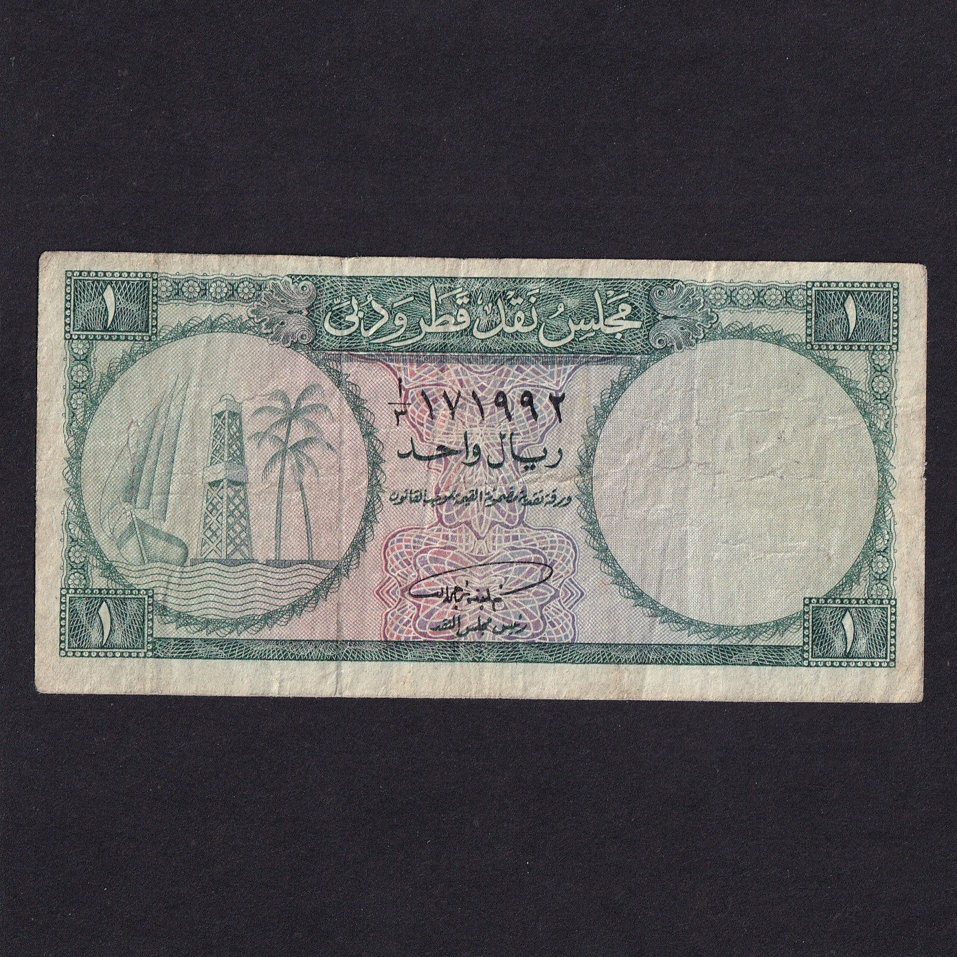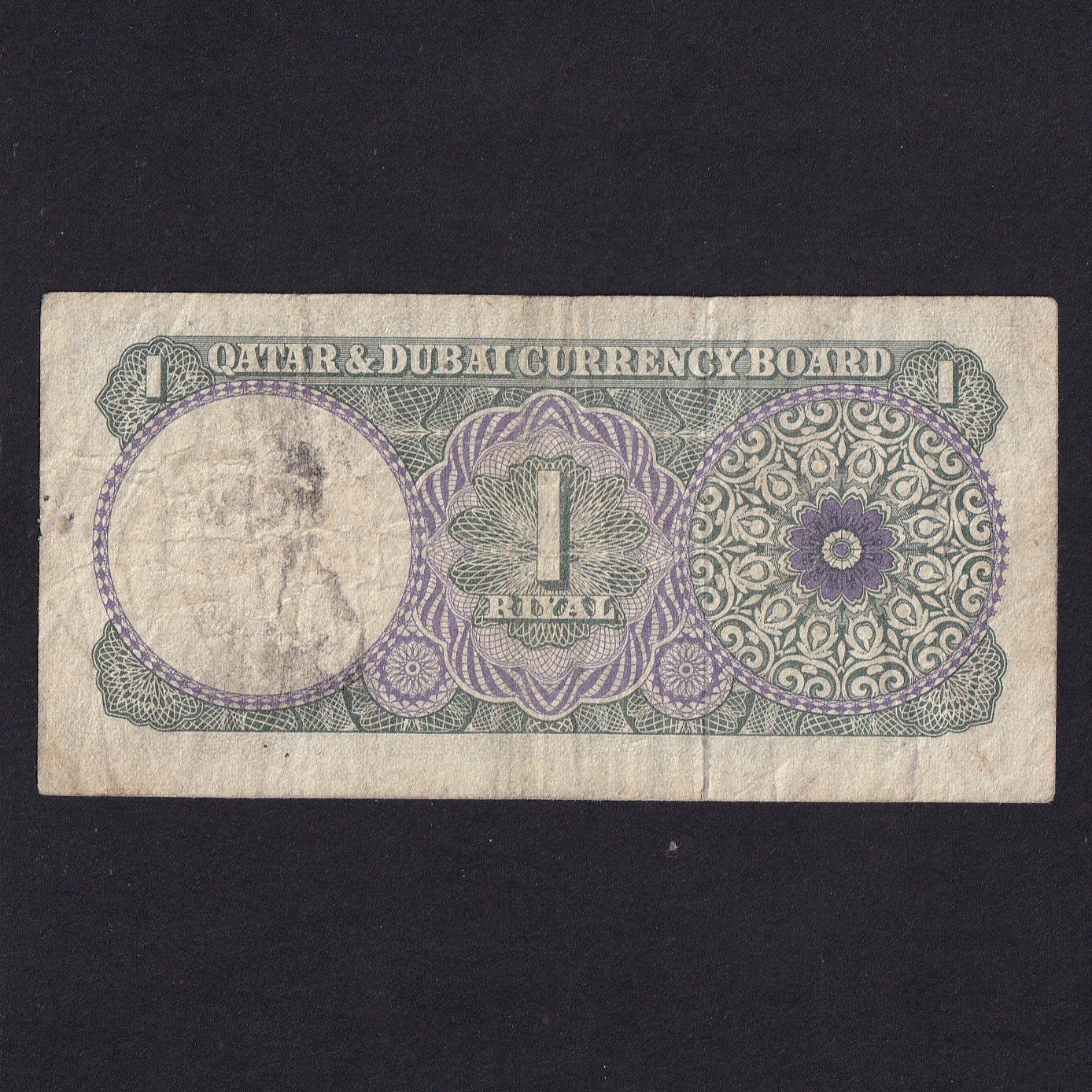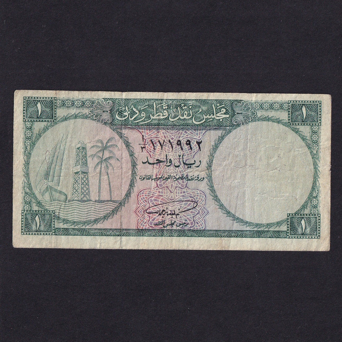 Decrease quantity for Qatar & Dubai (P1) 1 Riyal, 1964, VG/Fine