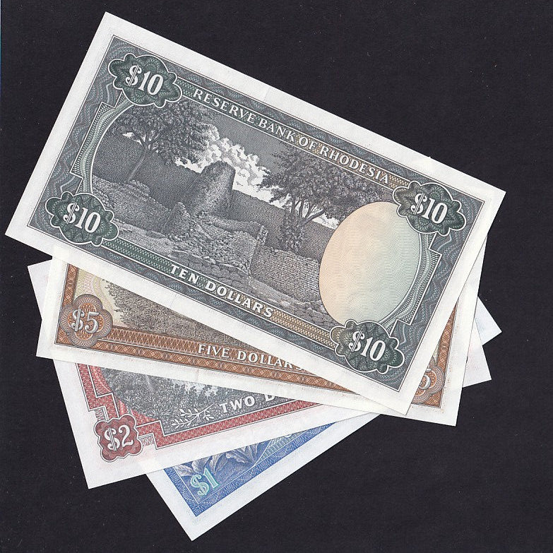 Rhodesia (P34c, 35c, 36a & 33i) $1 - $10type set, Rhodes watermark, UNC