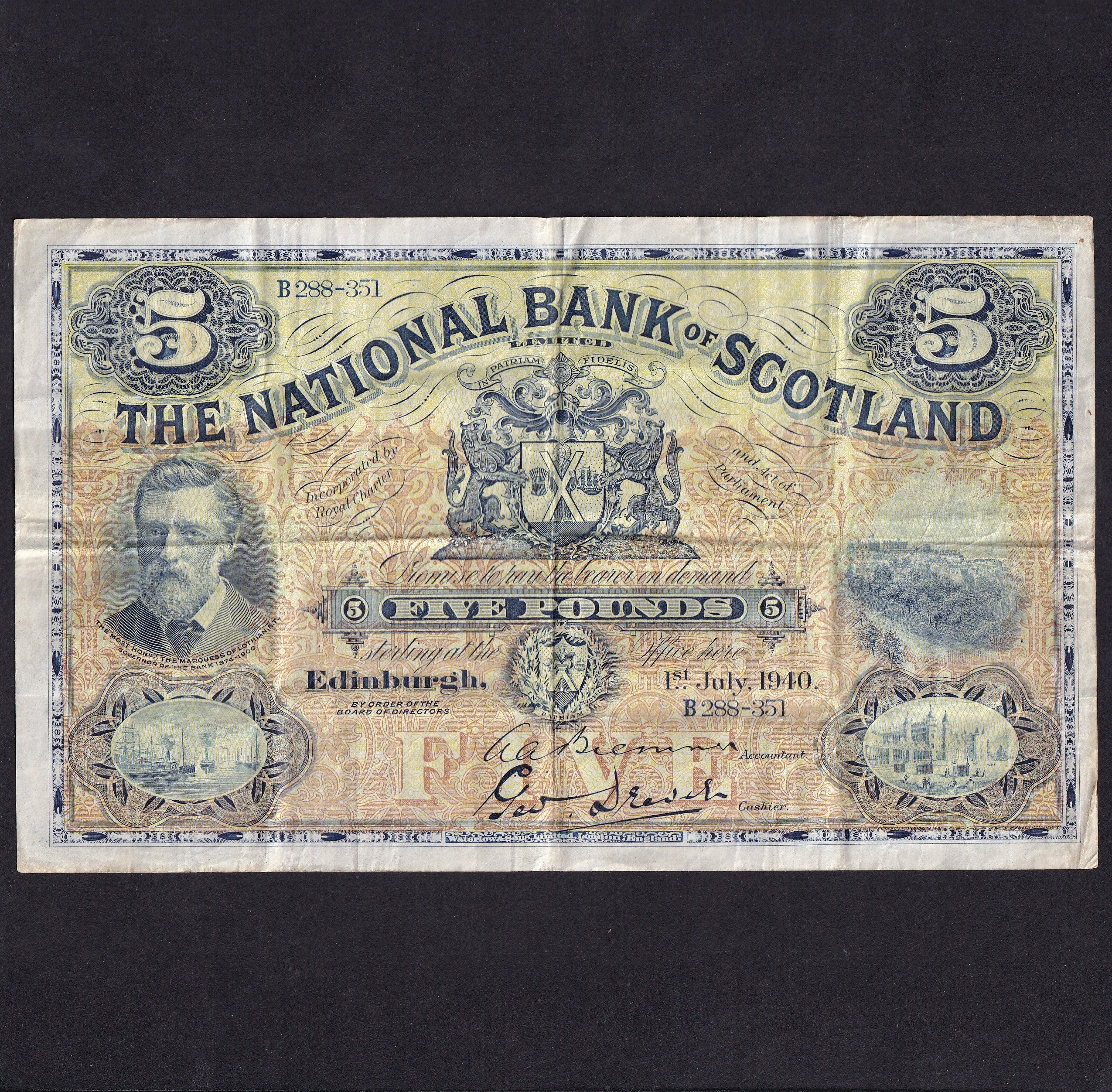 Scotland (P259b) National Bank of Scotland, £5, 1st July 1940, Bremmer/ Drever, B288-351, PMS NA53, Fine