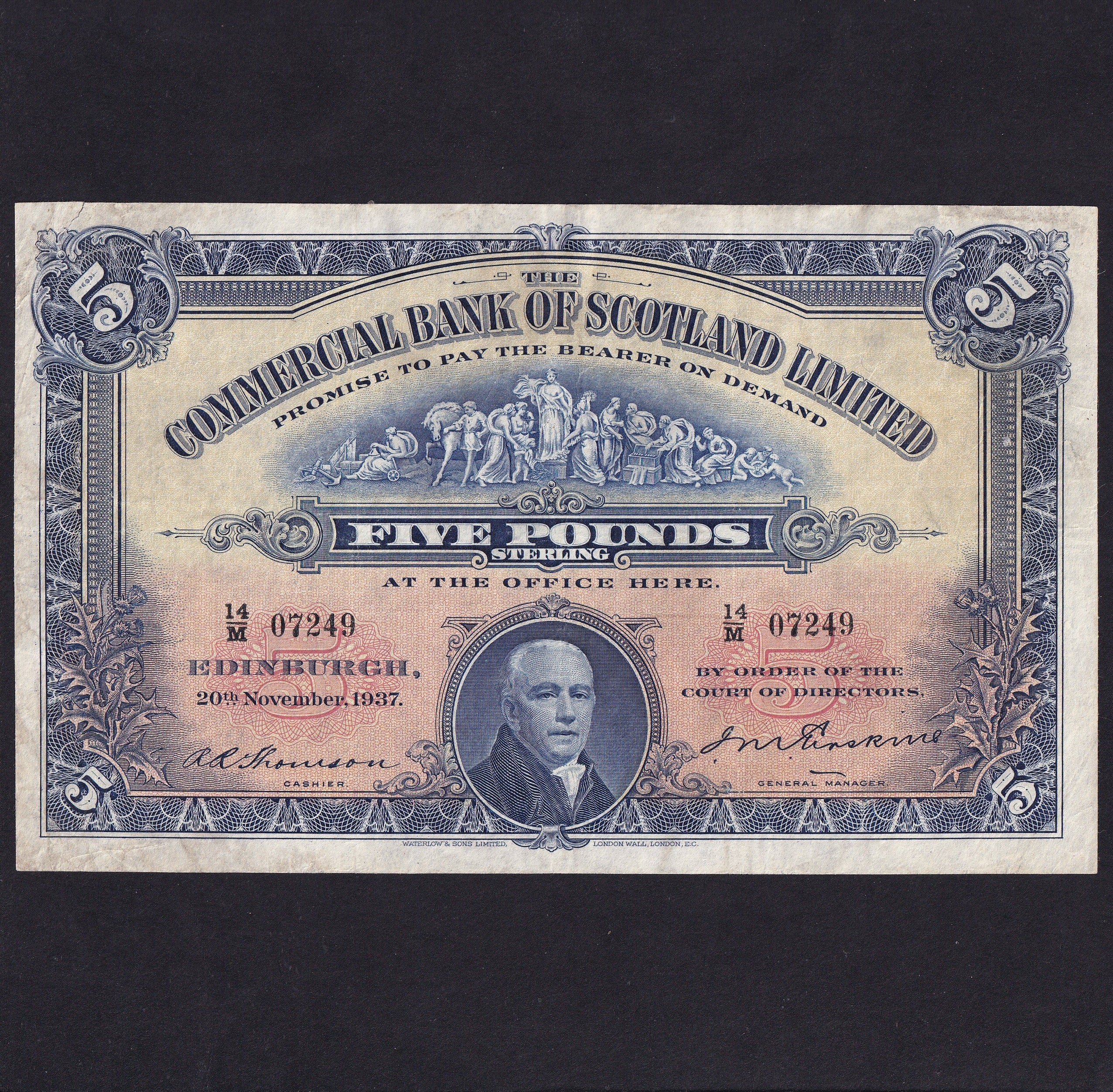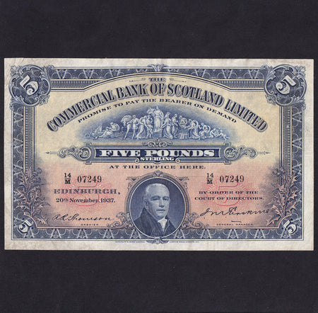 Scotland (PS328b) Commercial Bank of Scotland Limited, £5, 20th November 1937, 14M 07249, PMS CO62c, VG