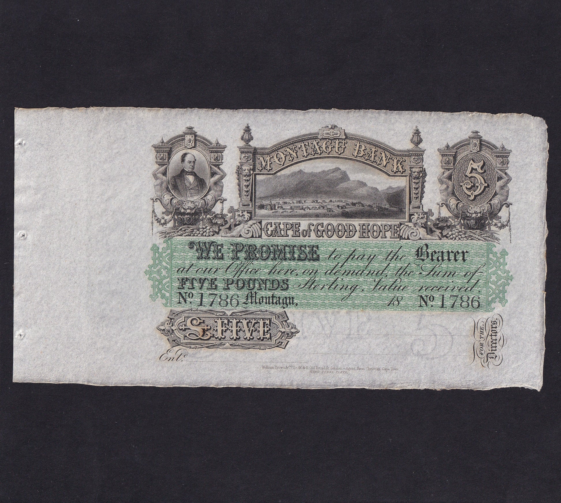 Increase quantity for South Africa (PS231) £5, 18xx, Montagu Bank, unissued, Good EF