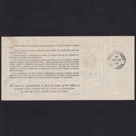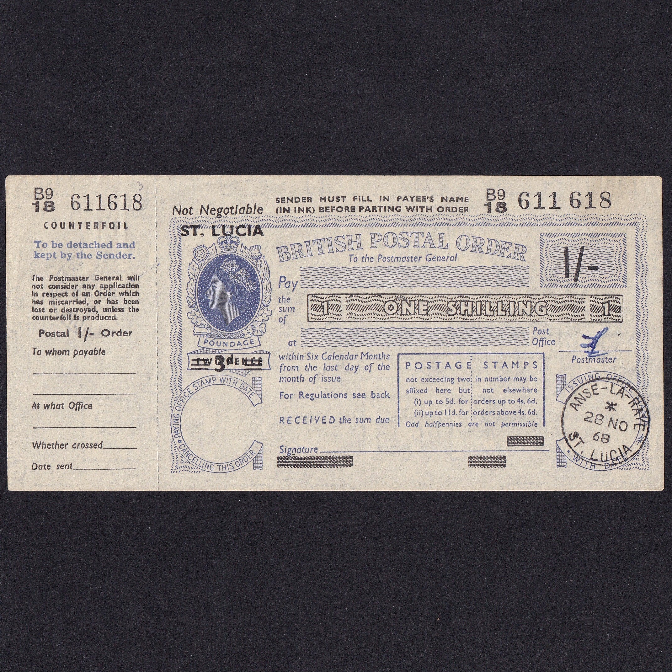 St Lucia, 1/- Postal Order, 1968, QEII, B918 611 618, Good EF