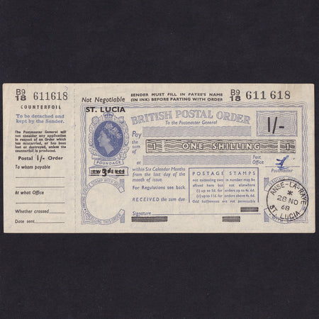 Decrease quantity for St Lucia, 1/- Postal Order, 1968, QEII, B918 611 618, Good EF