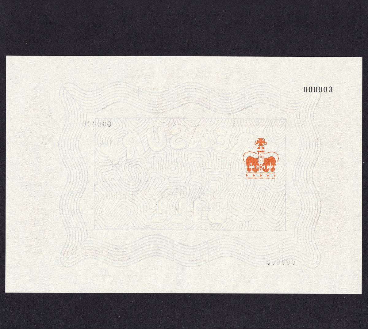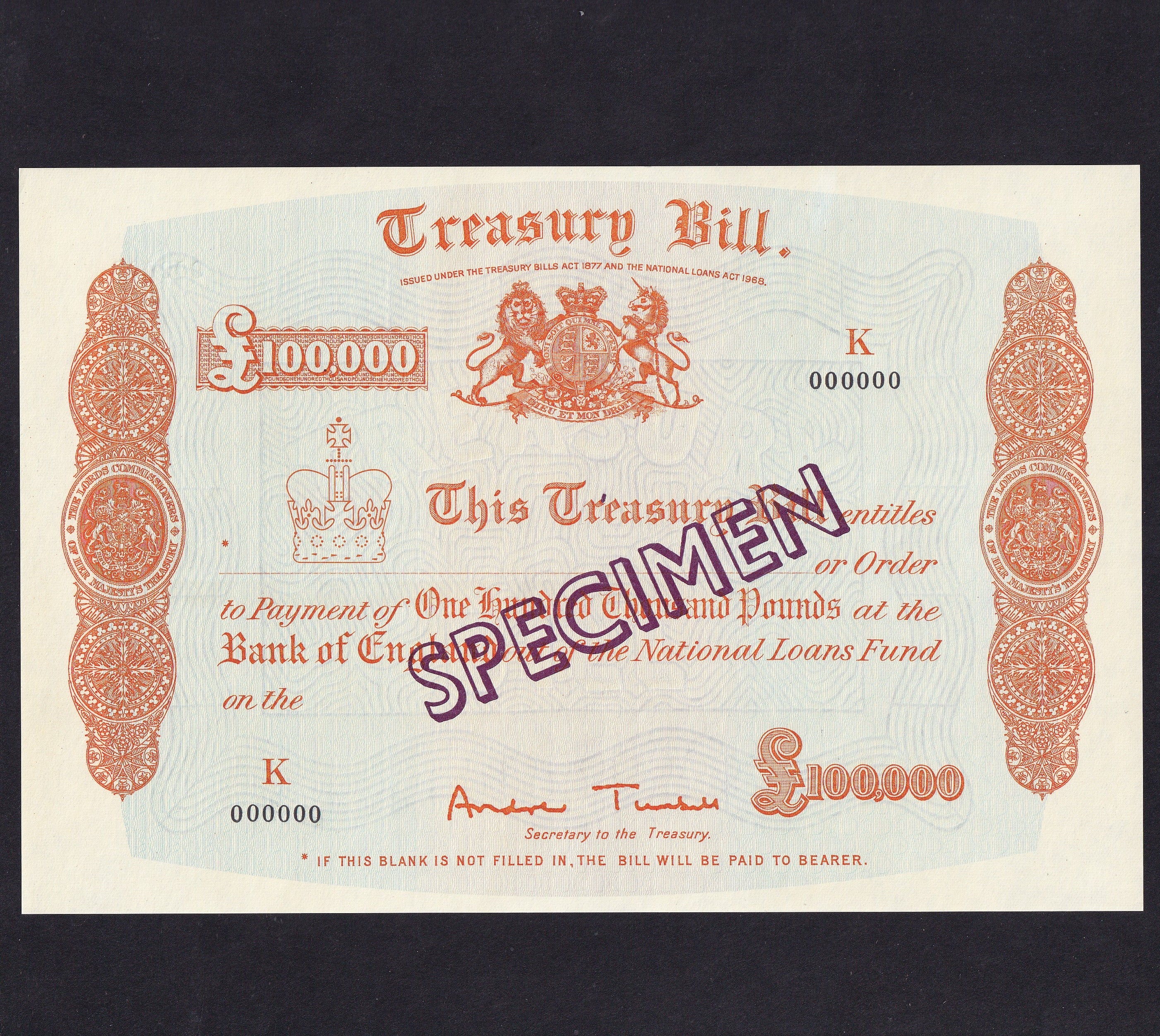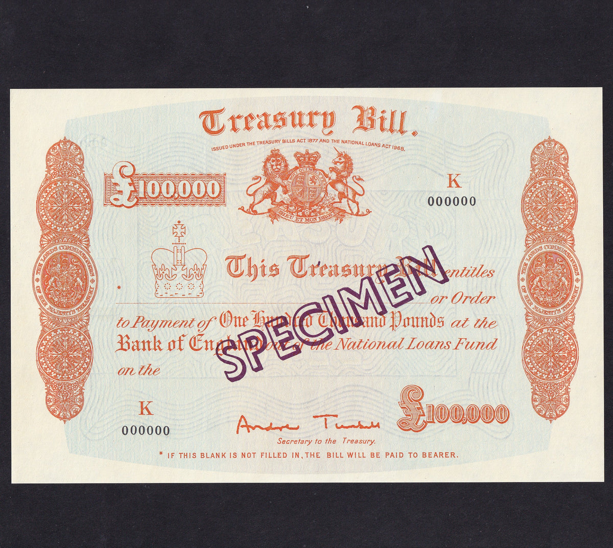 Treasury Bill £100,000 Specimen, 1998-2002, K000000, Turnbull signature, UNC