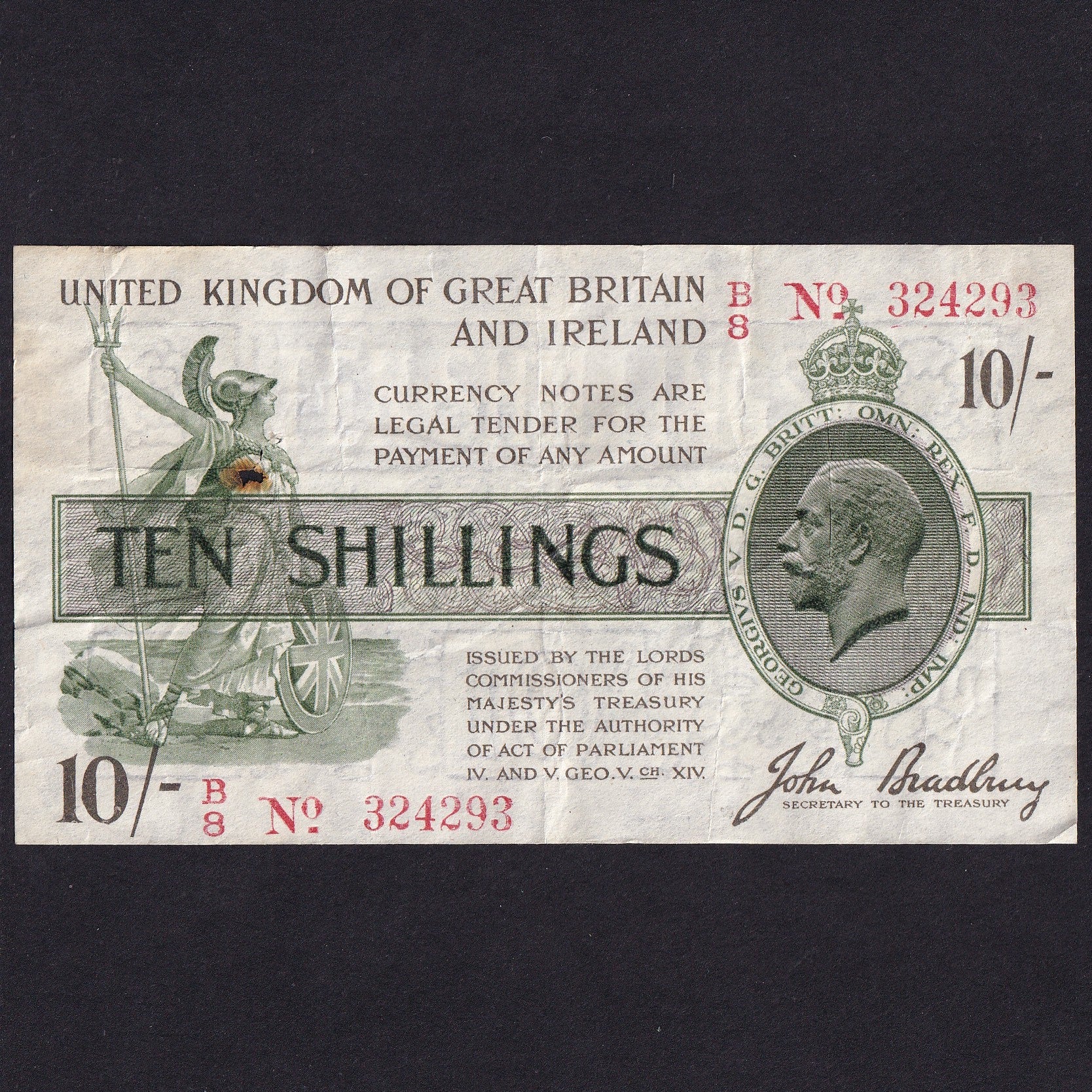 Treasury Series (T20) Bradbury, 10 Shillings, 3rd issue, B8 No.324293, A/VF
