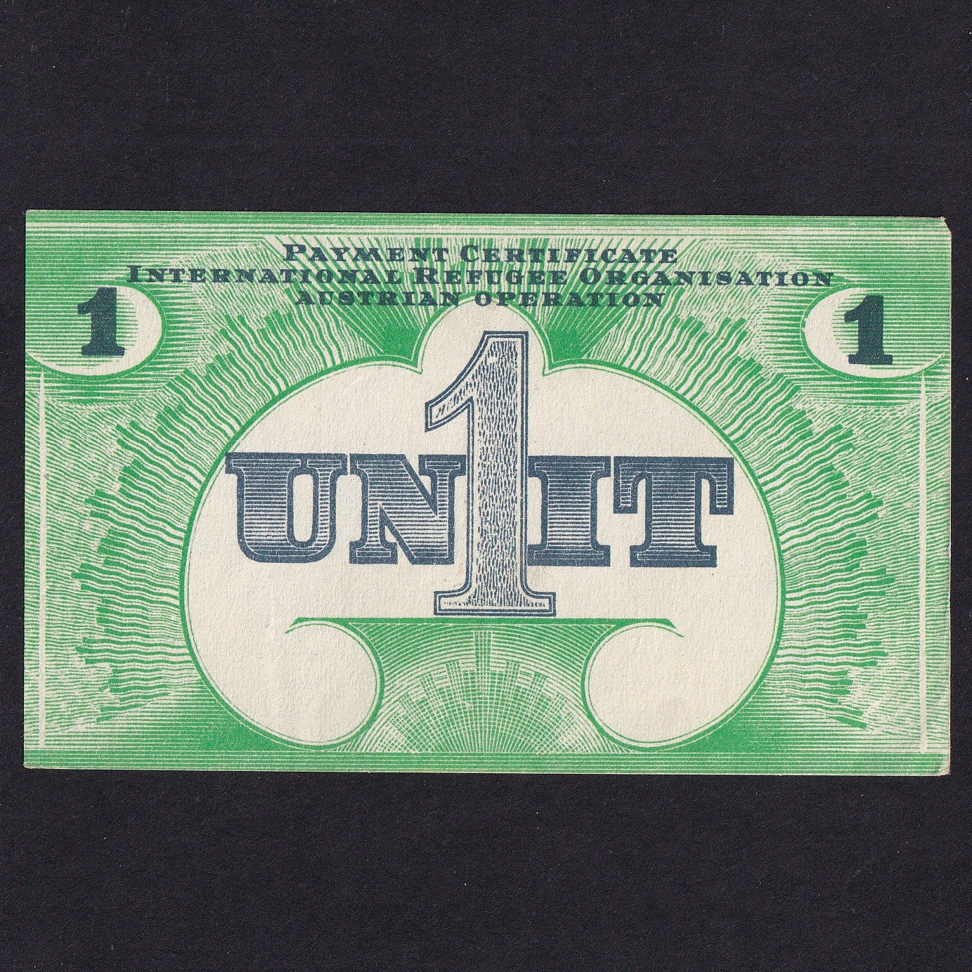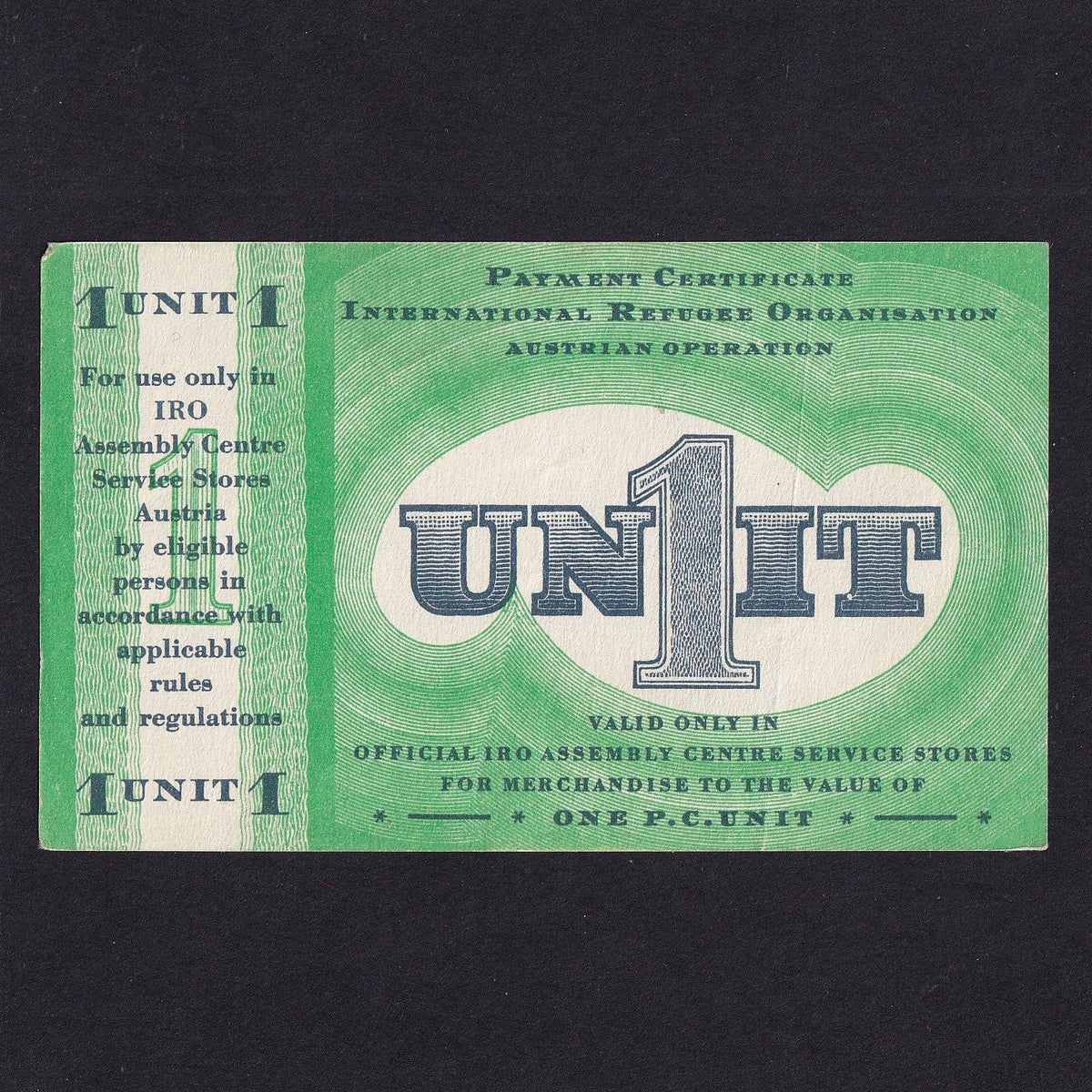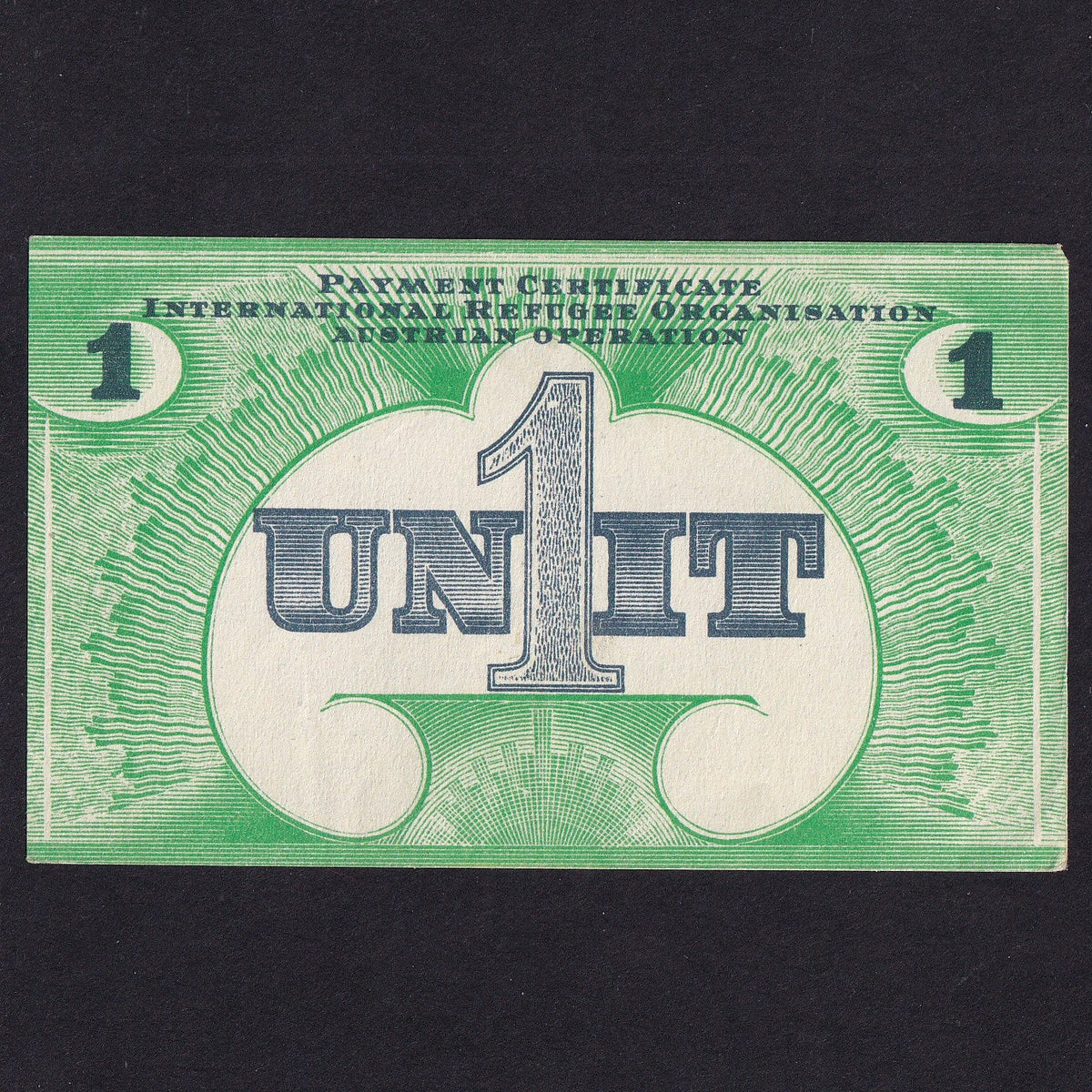 United Nations, WWII, Austria International Refugee Organisation, 1 Unit, Campbell 7360, Fine